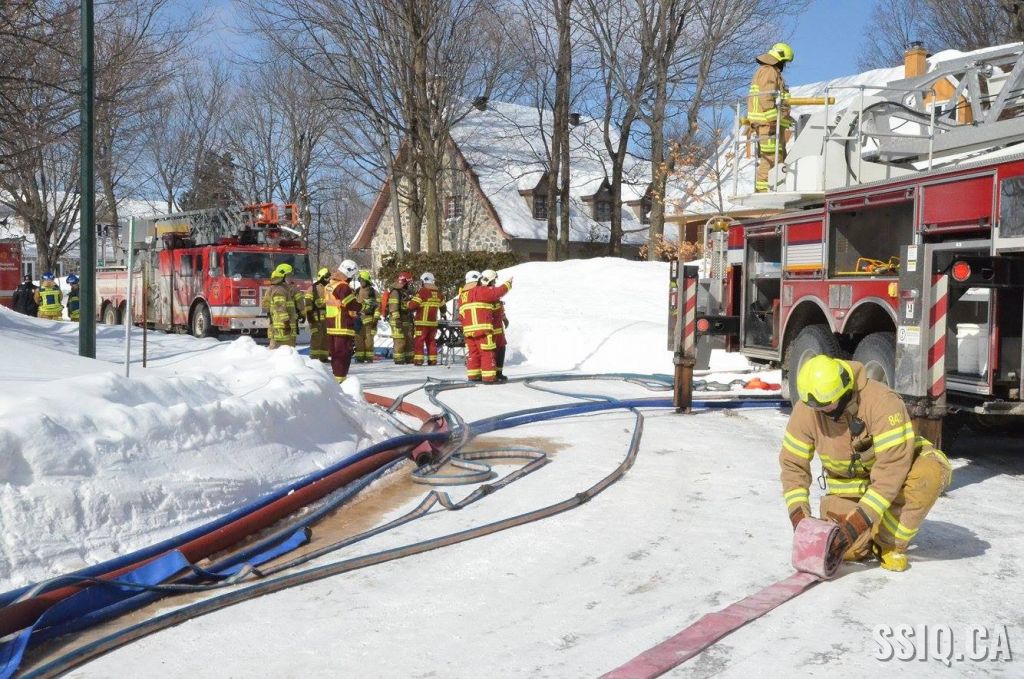 Une alarme incendie est en fonction, et de la fumée est présente dans les couloirs. L'évacuation est demandée. Un témoin stipule aux policiers sur place que le feu serait pris dans le toit. Des travaux sont en cours dans l'entretoit, toutefois le feu n'est pas visible de l'extérieur.
