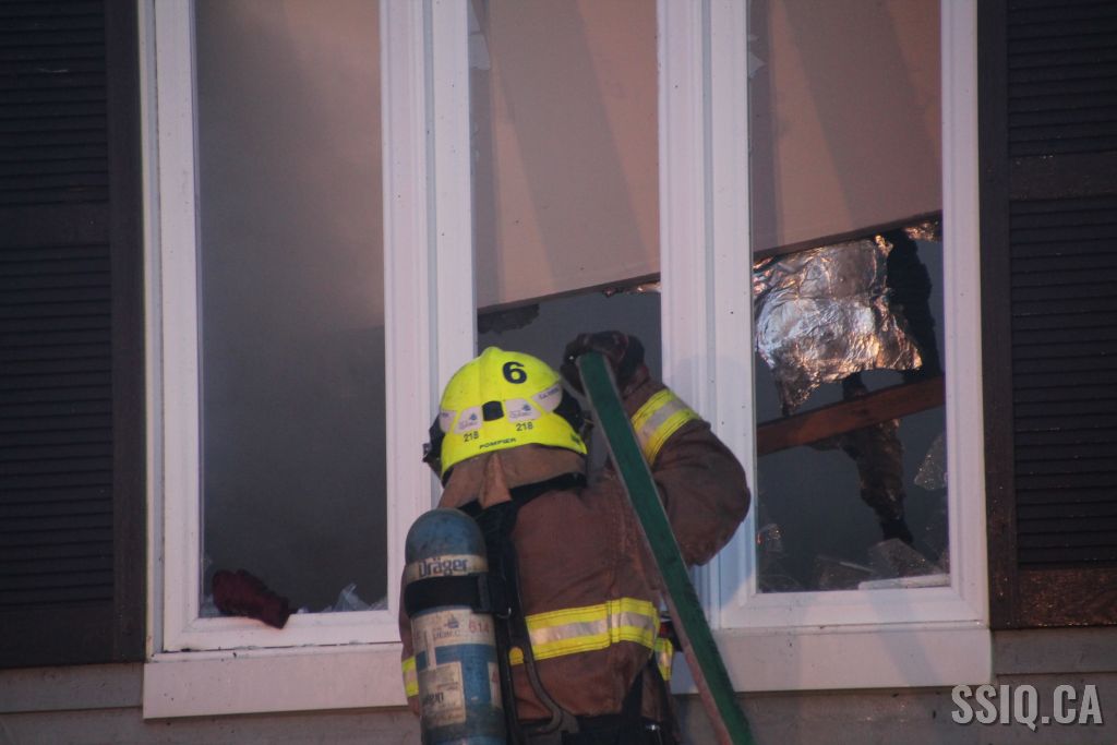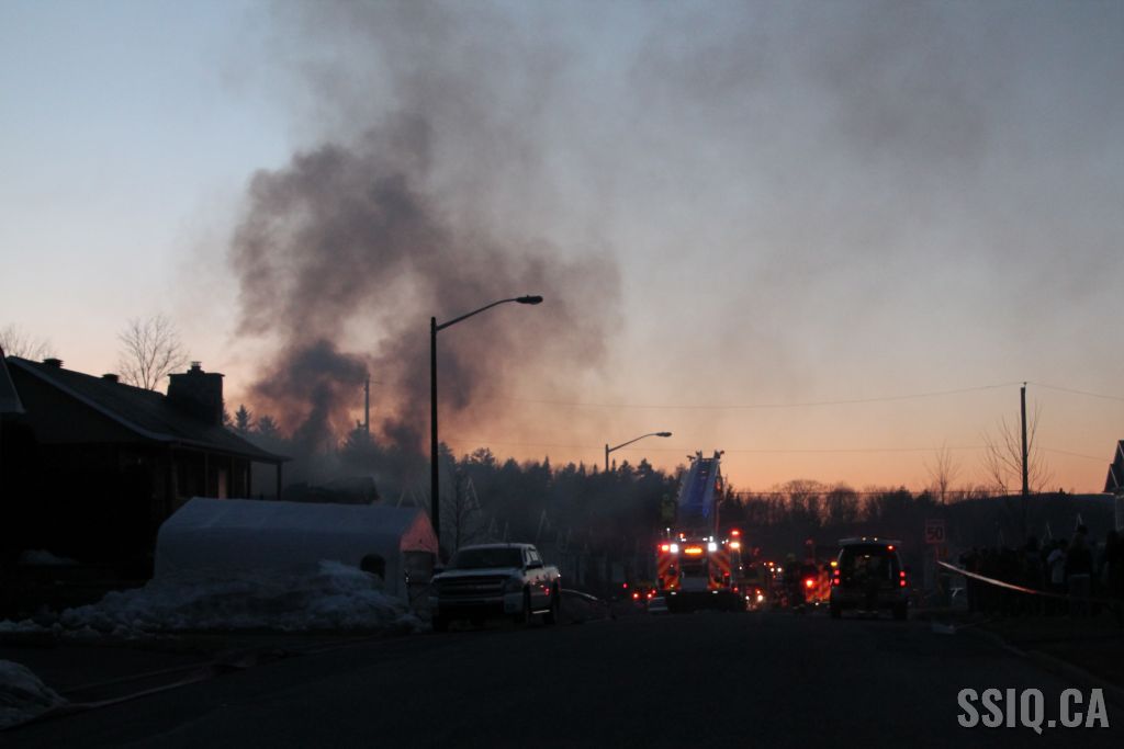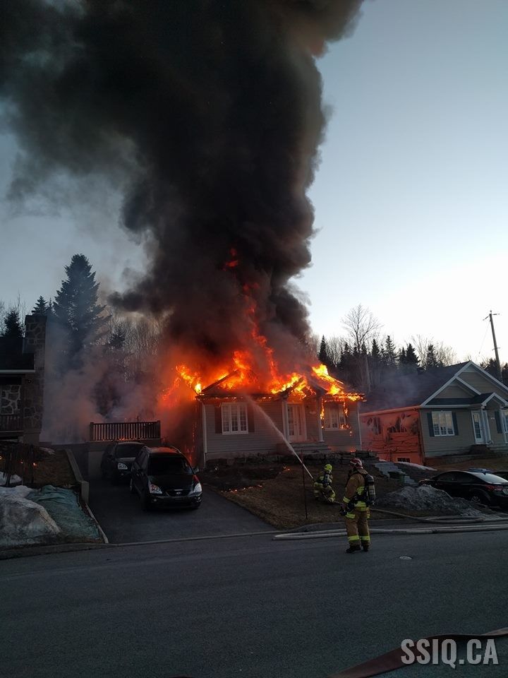 L'appel vient d'un voisin, il mentionne qu'un gros feu est en progression dans la résidence en face de chez lui et que l'évacuation est en cours.