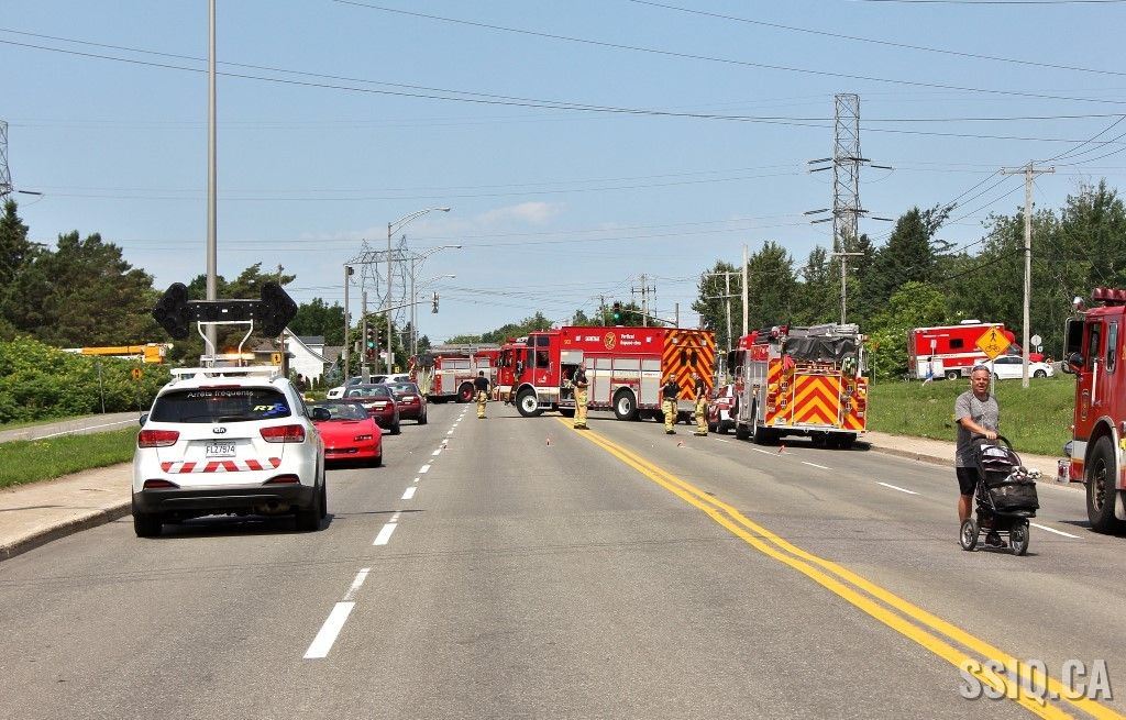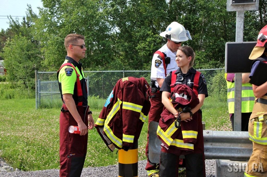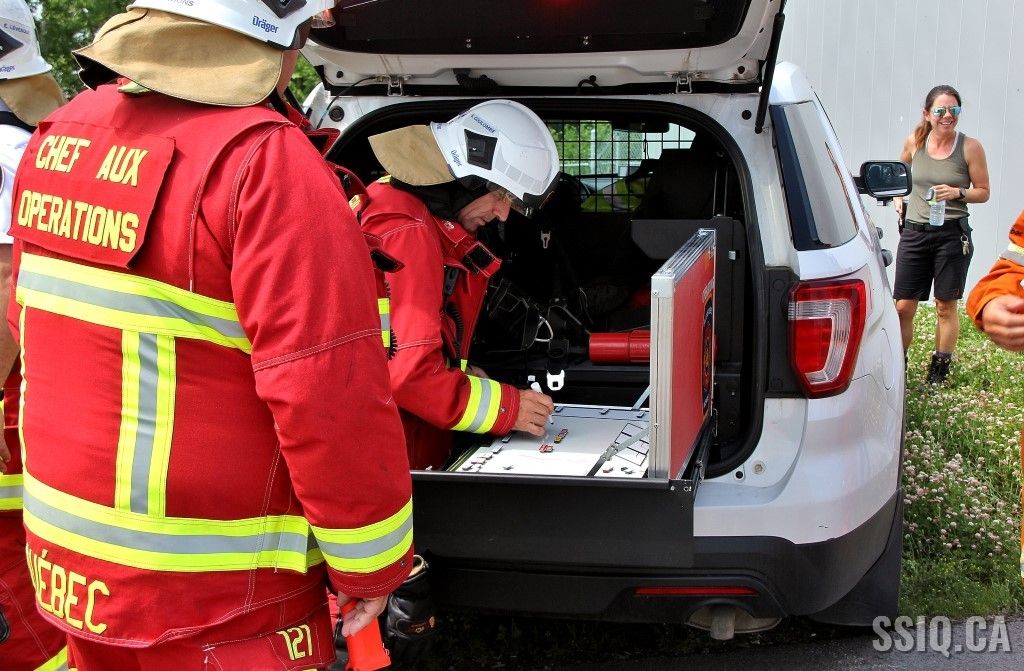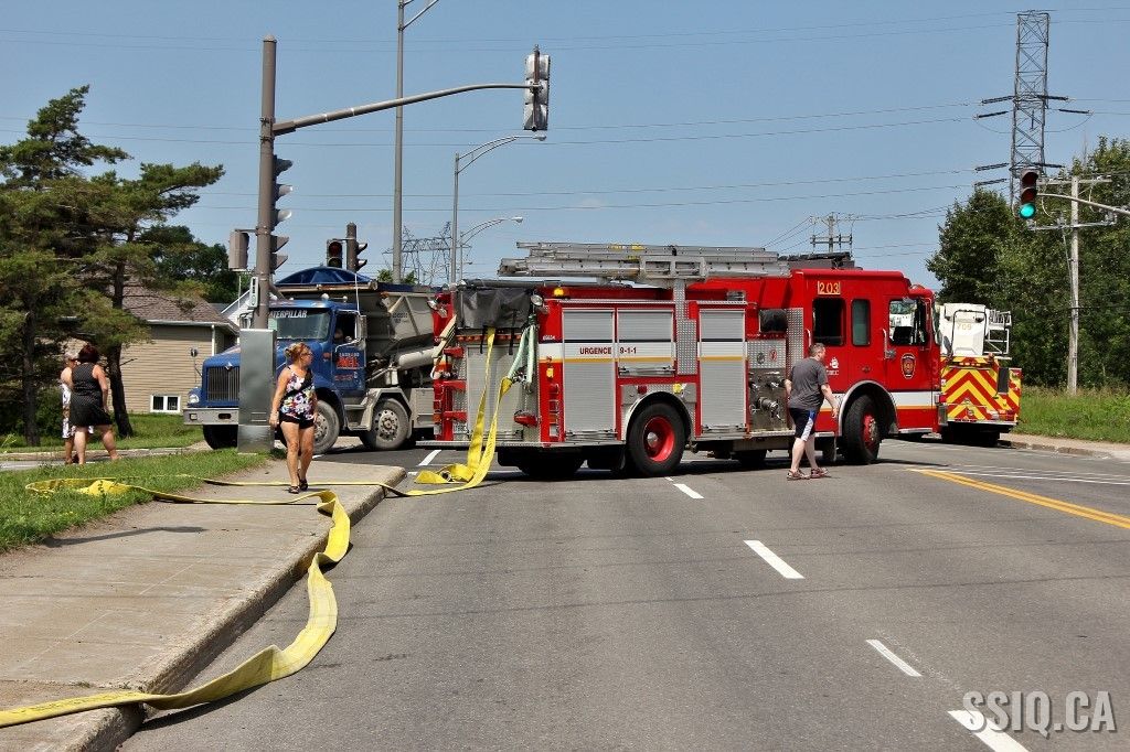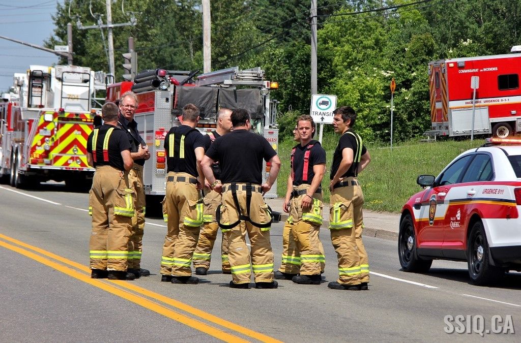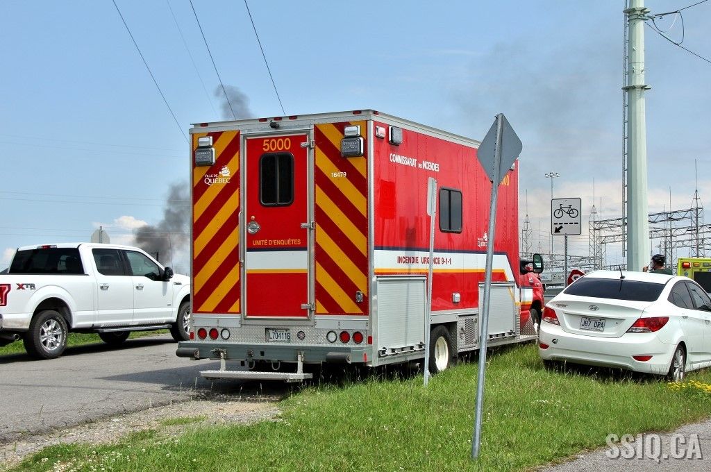 Les ingénieurs de l'Hydro évaluent la procédure à suivre pour procéder de façon sécuritaire pour les intervenants. Les services du véhicule 1299 ont été déployés, étant donné la chaleur accablante et l'absence de points d'ombre autour du site.
