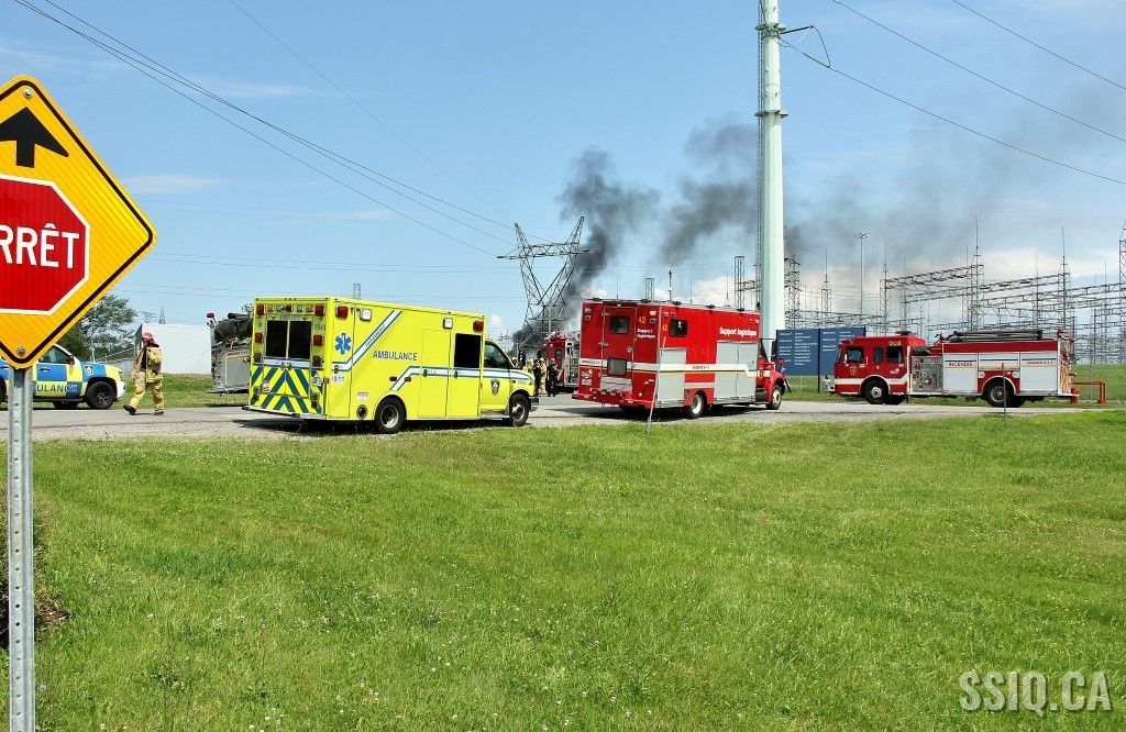 Un premier appel provient de L'Hydro Québec, mentionnant une explosion et un incendie dans un transformateur sur le site d'un poste de distribution de la compagnie,