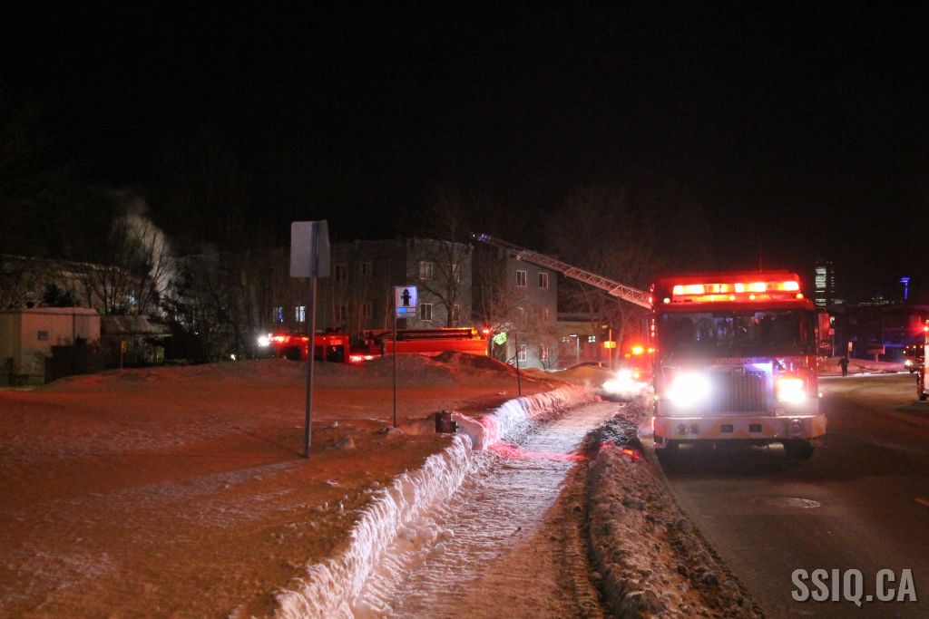 En milieu de soirée, plusieurs appels sont logés au 911 pour mentionner que le feu serait pris à l'arrière dans la résidence de personnes âgées de 19 logements située au 1600 rue de la Pointe-aux-Lièvres.