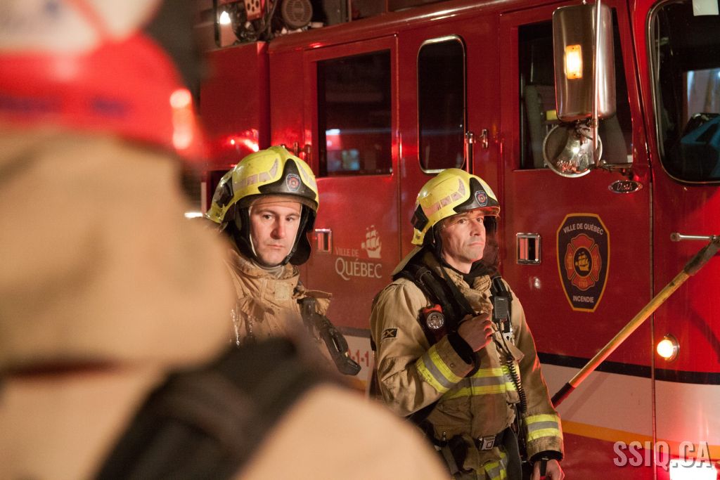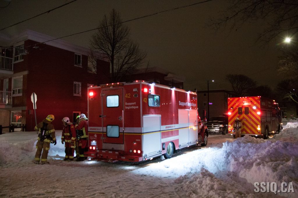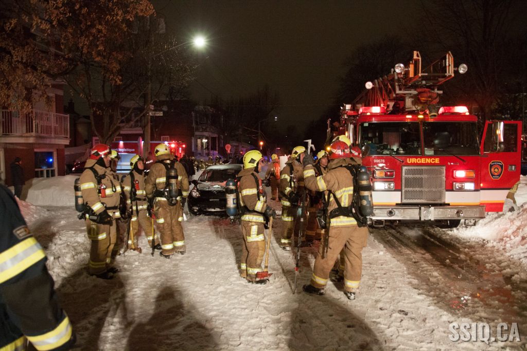 La centrale 911 reçoit plusieurs appels pour signaler l'incendie. Les détails font mention de fumée et flammes visibles au 3e étage de l'immeuble de 6 logements. Devant les détails, et en route vers l'intervention, le chef Savard ordonne l’intervention nécessaire.