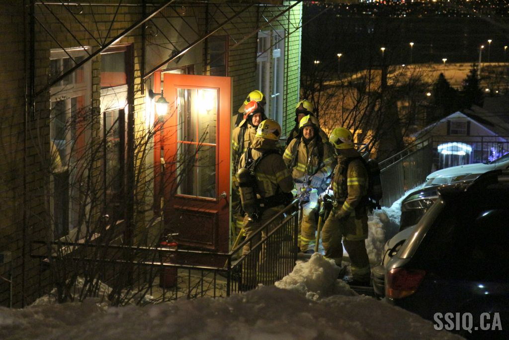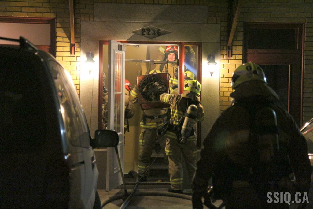 L'appel provient de la résidente des lieux qui mentionne avoir de la fumée dans son appartement, qu'elle étouffe et évacue le bâtiment.