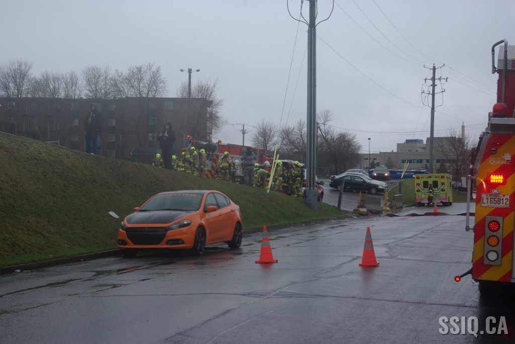 Les premières constatations des équipes arrivées sur les lieux rapportent un feu dans le local où se trouve l'alimentation électrique. Hydro-Québec est donc demandé en priorité un. Le chef demande également l'intervention nécessaire, puisqu'un foyer est visible.