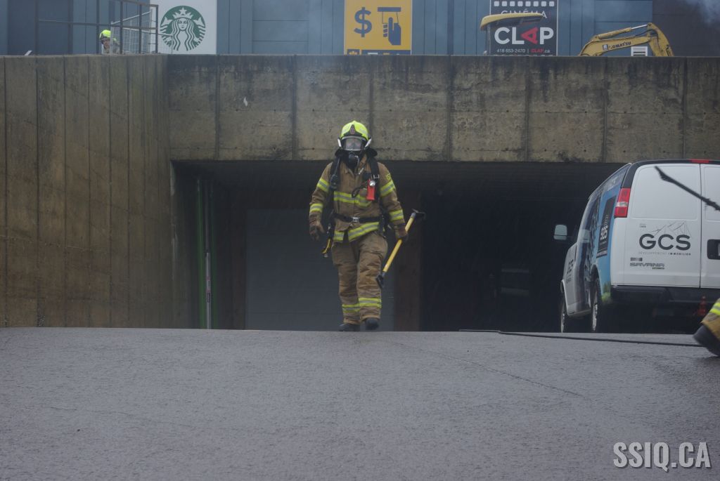 Le feu sortirait du sous-sol en arrière selon un plaignant et en même temps une alarme incendie est reçue à la centrale 911. Il y aurait également de la fumée au niveau du cinéma Le Clap.