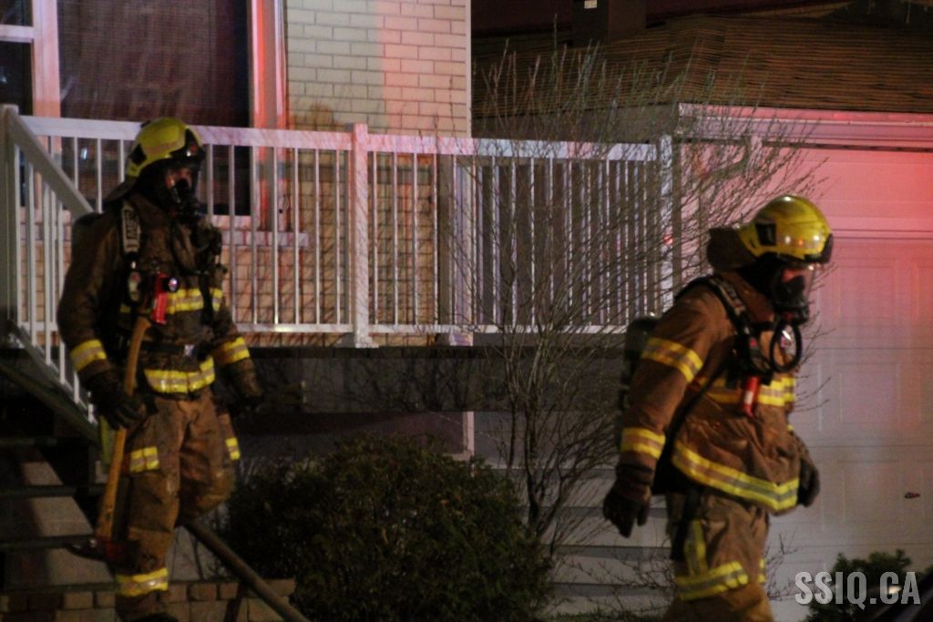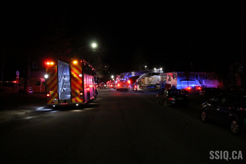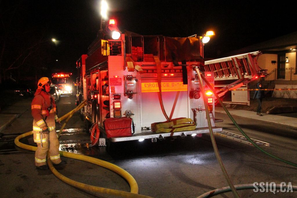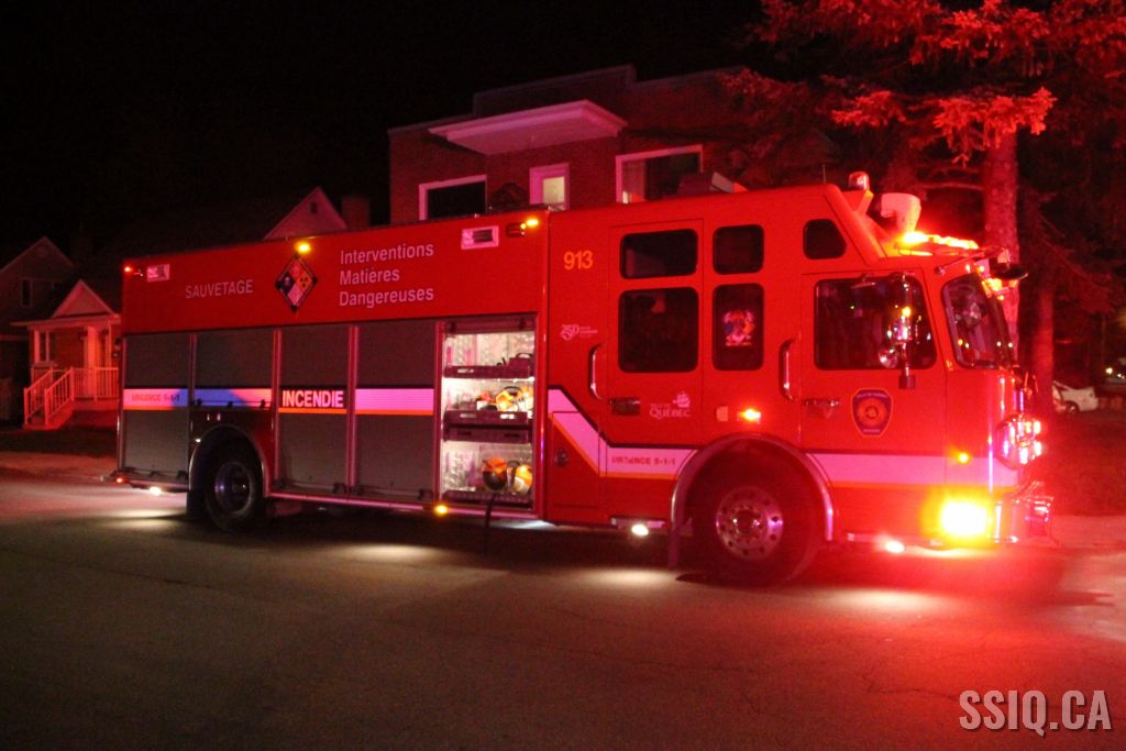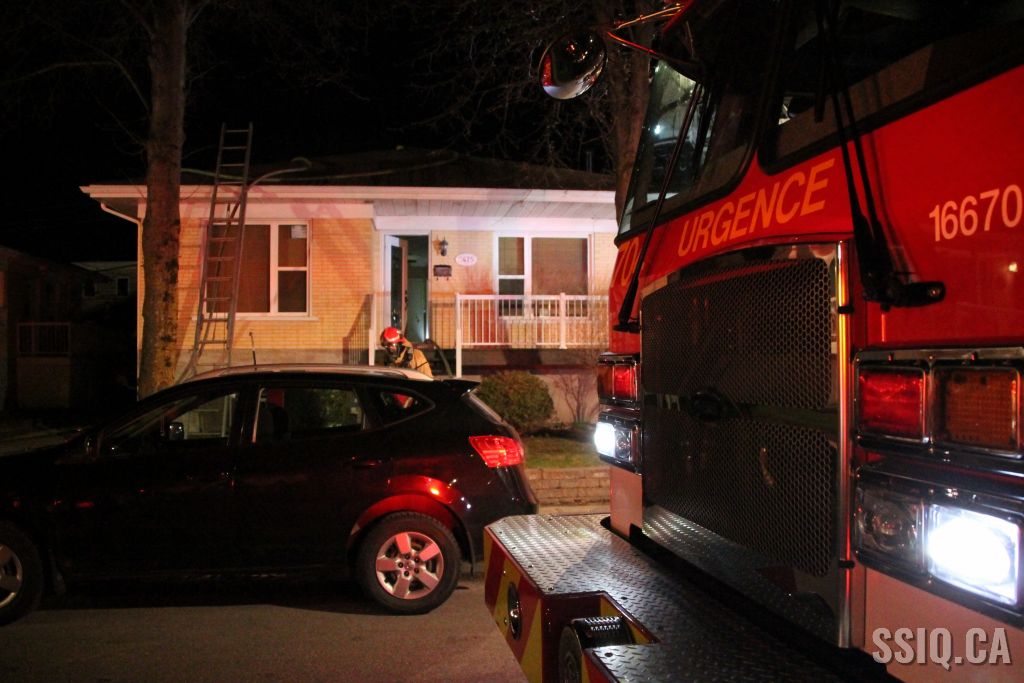 Un appel est logé au 911, le plaignant mentionne que le feu serait pris sur une galerie derrière chez lui.