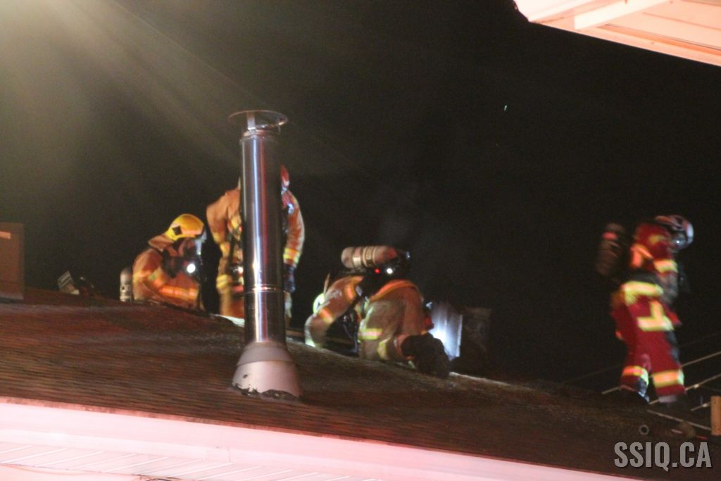 Sur place, le chef 123 confirme les faits et ordonne l'intervention nécessaire. Le feu fait rage à l'arrière du bâtiment et commence à se propager au niveau de la toiture.