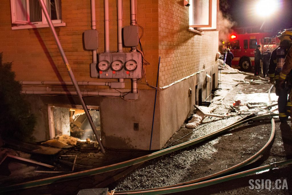 L'appel provient d'un citoyen sur la rue Trudeau, qui mentionne voir des flammes et de la fumée s'échapper d'un immeuble à logement. Il mentionne également voir les gens évacuer le bâtiment. Rapidement sur place, le 205 confirme une fumée apparente ainsi que le feu éclaté au sous-sol et ordonne l'intervention nécessaire. Le 205 rabbat les flammes rapidement tout en s'assurant que le bâtiment est évacué. La propagation étant négative aux étages supérieurs, l'aggravation improbable est donnée par le PC en 30 minutes.