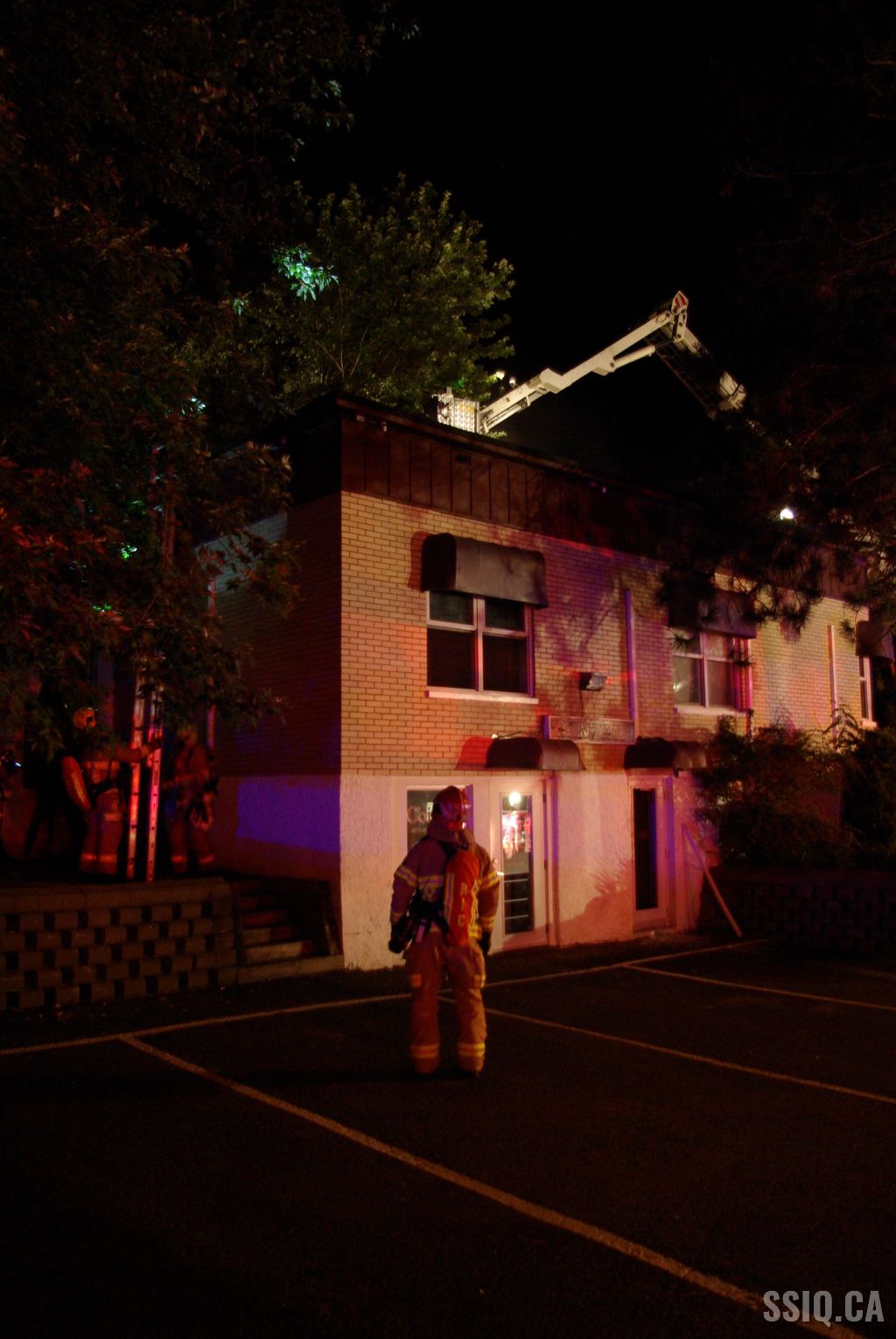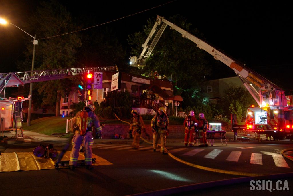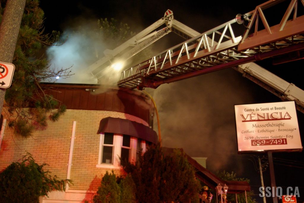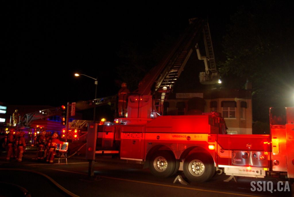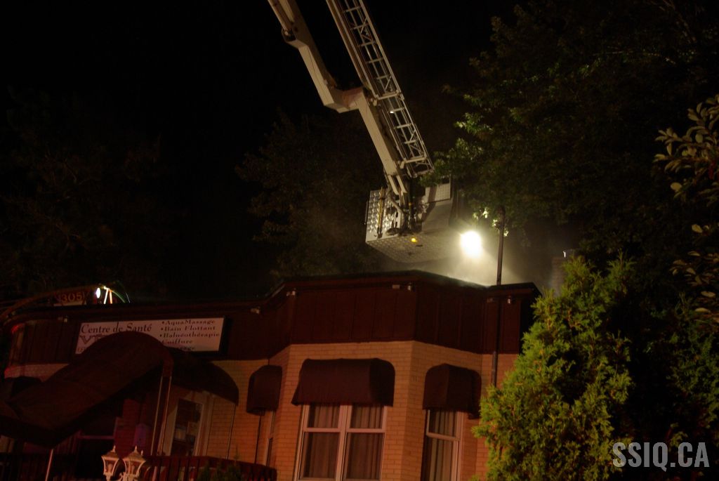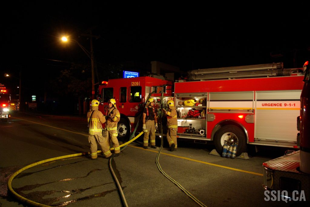 Le bâtiment commercial d'un étage et détaché de tous les côtés ne présente aucun signe apparent selon les informations données par l'officier de la caserne 9 à son arrivée. Néanmoins, la centrale rapporte de la fumée qui sortirait de l'entretoit. C'est confirmé par l'unité 209 qui voit effectivement de la fumée s'échapper de la toiture.