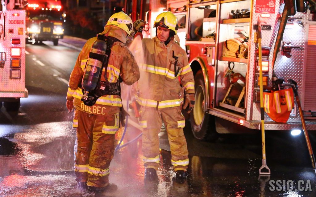 Rapidement sur place, les pompiers de la caserne 6 établissent une lance pour procéder à l'attaque des flammes. L'intervention nécessaire est ordonnée puisqu'il y a un risque de propagation à la toiture et une bonne fumée s'échappe de plusieurs secteurs du bâtiment.