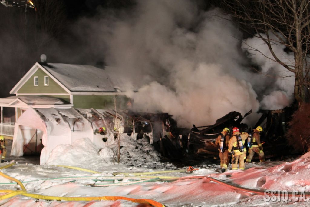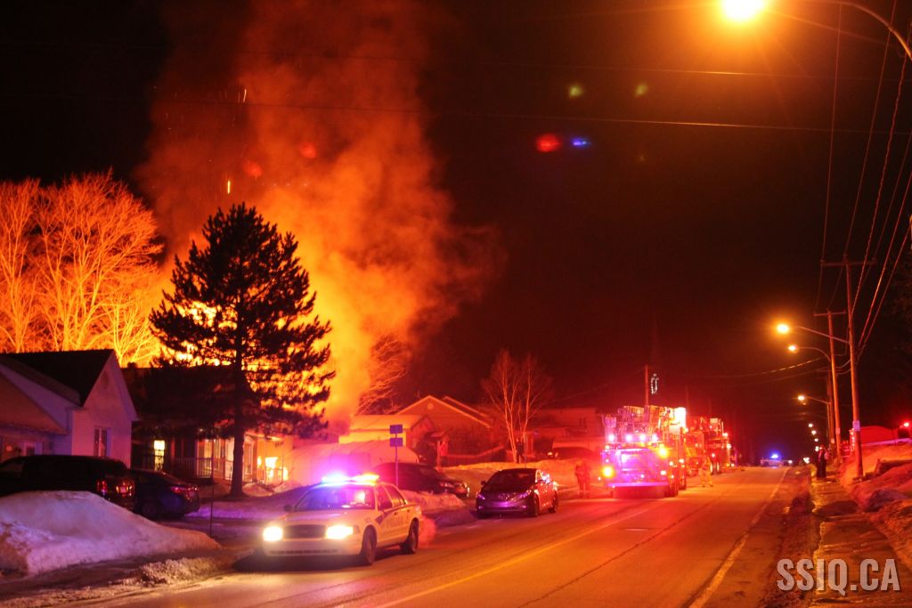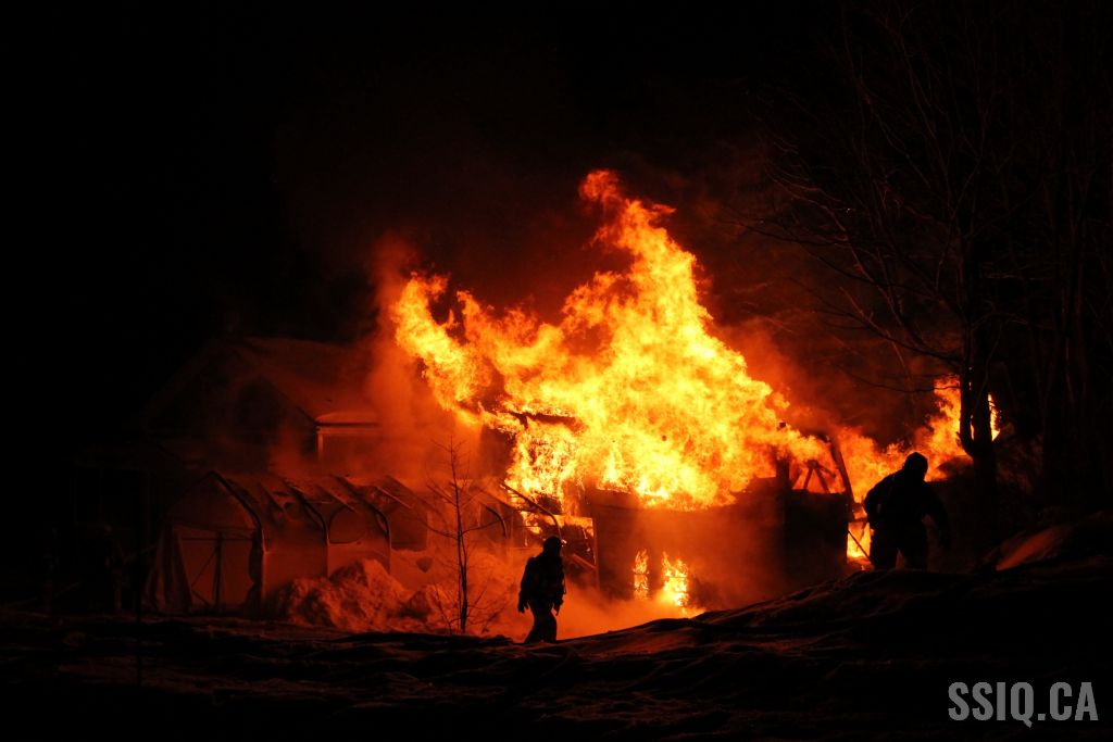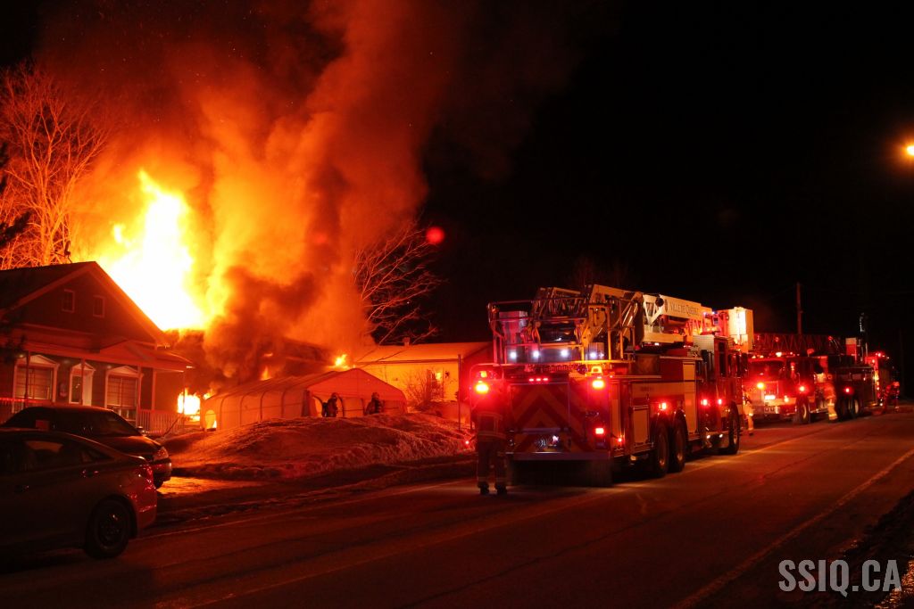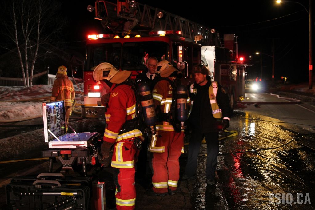 En route pour l'intervention du 1643 Route de l'Aéroport, des policiers constatent qu'un second incendie est en cours au 3210 Route de l'aéroport. Les policiers ont donc évacué les résidents des maisons ou il y avait risque de propagation.