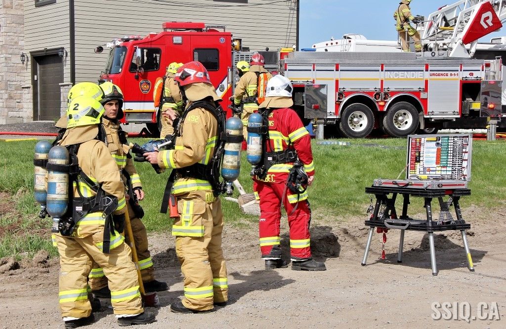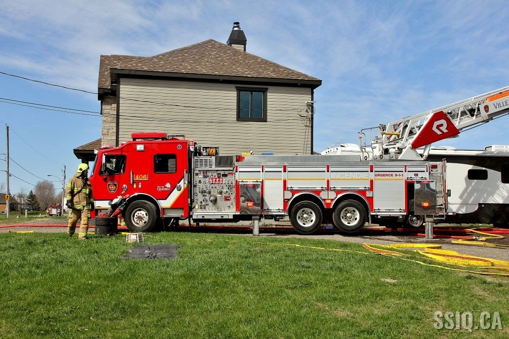 L'appel entre au 9-1-1 par une passante qui voit des flammes de 8 à 10 pieds derrière un garage de deux étages. Elle mentionne que le feu se propage à la partie arrière du garage.