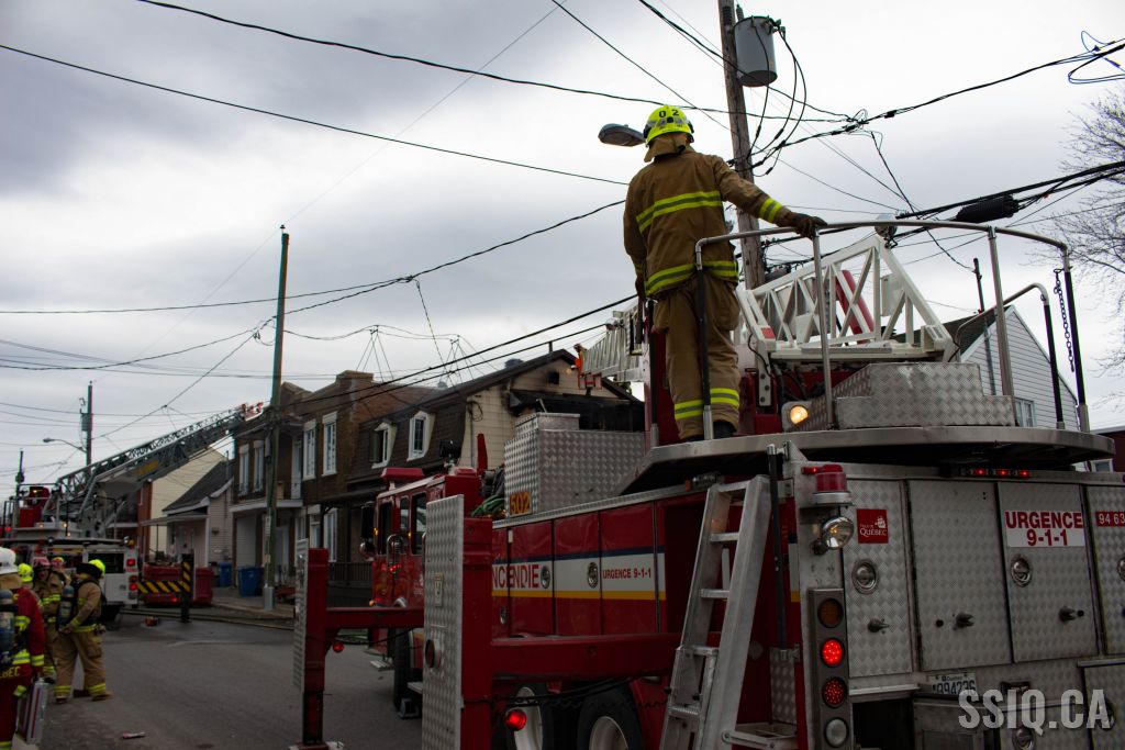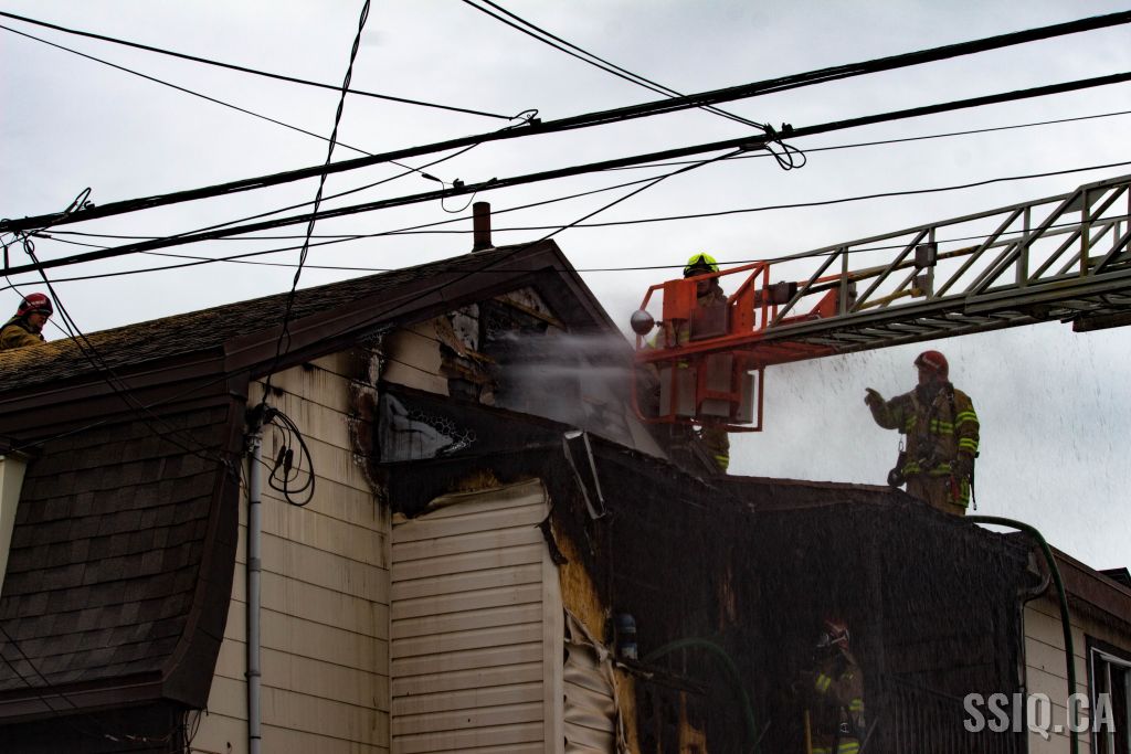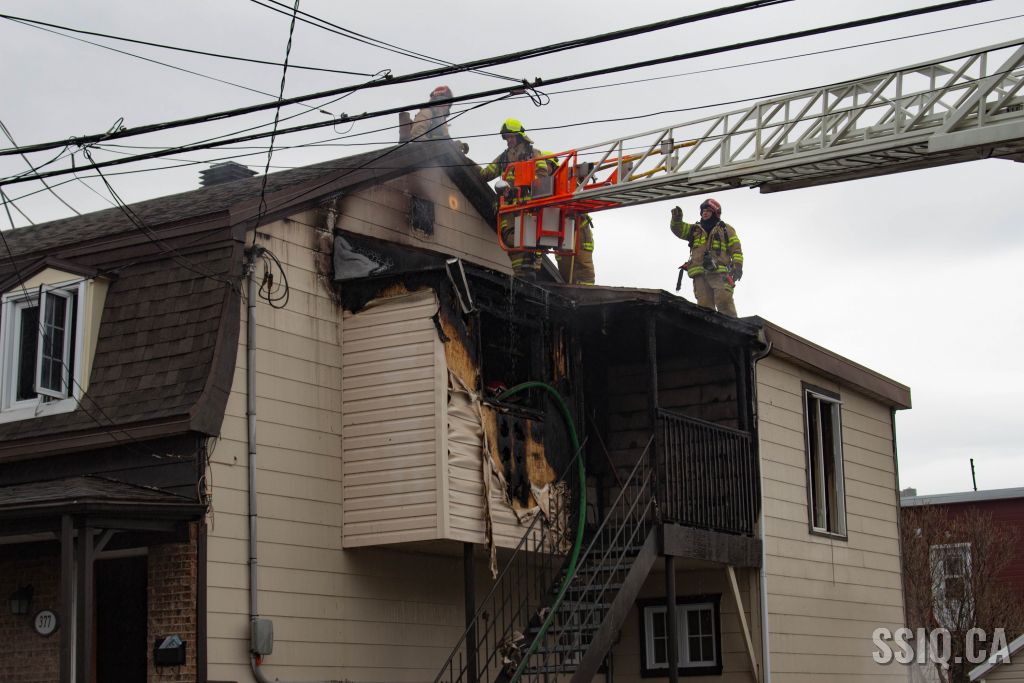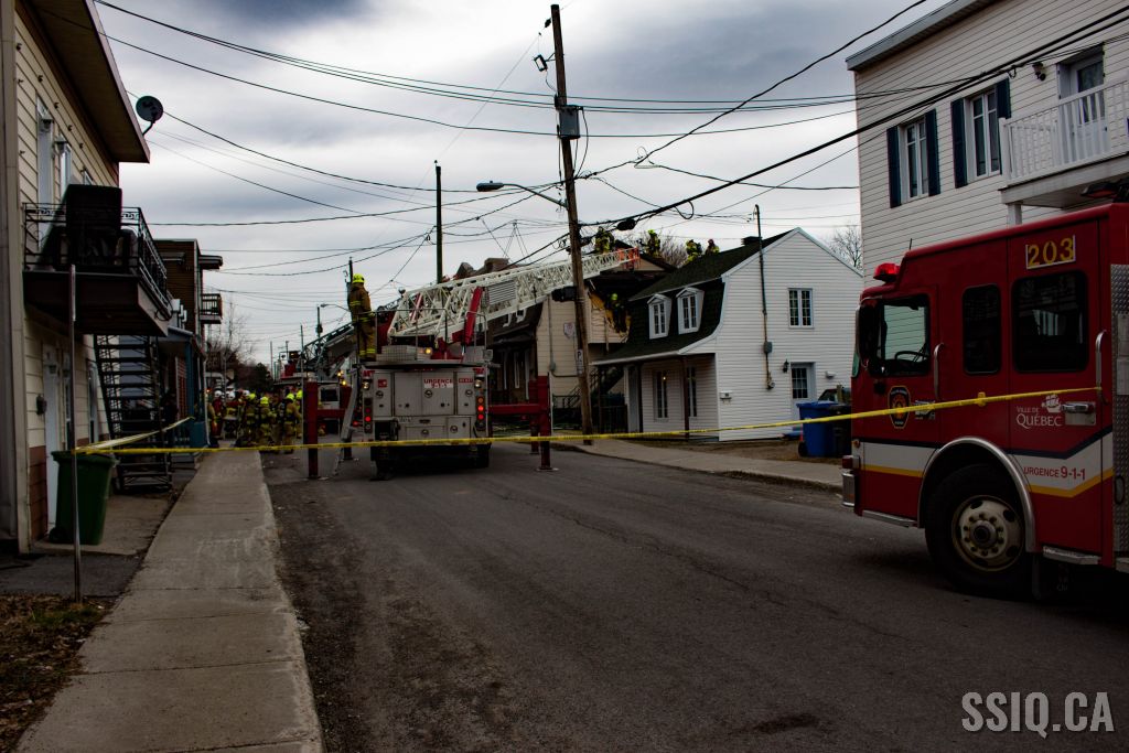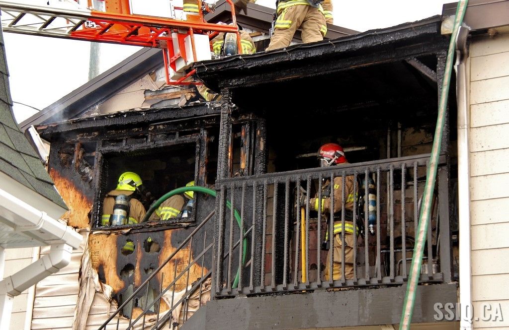De nombreux appels entrent en même temps à la centrale 9-1-1 disant que le feu est éclaté du coté ouest de la maison et se propage à l'intérieur. Un appelant confirme une explosion et constate que le feu est maintenant à l'intérieur du second étage.