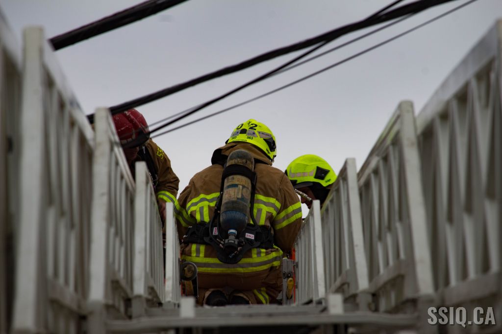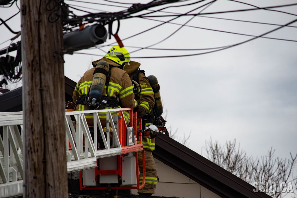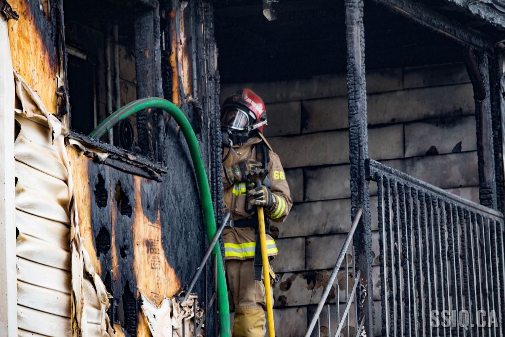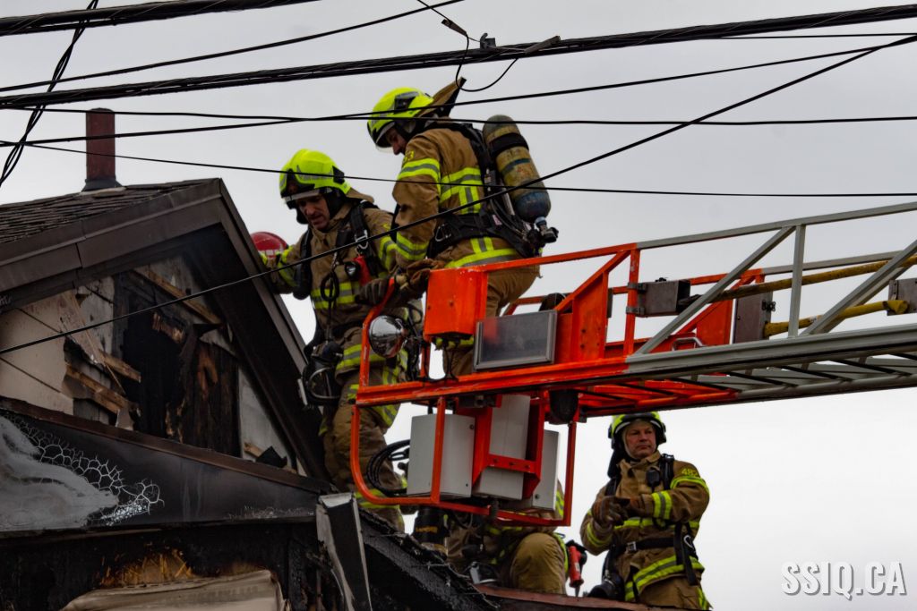 De nombreux appels entrent en même temps à la centrale 9-1-1 disant que le feu est éclaté du coté ouest de la maison et se propage à l'intérieur. Un appelant confirme une explosion et constate que le feu est maintenant à l'intérieur du second étage.