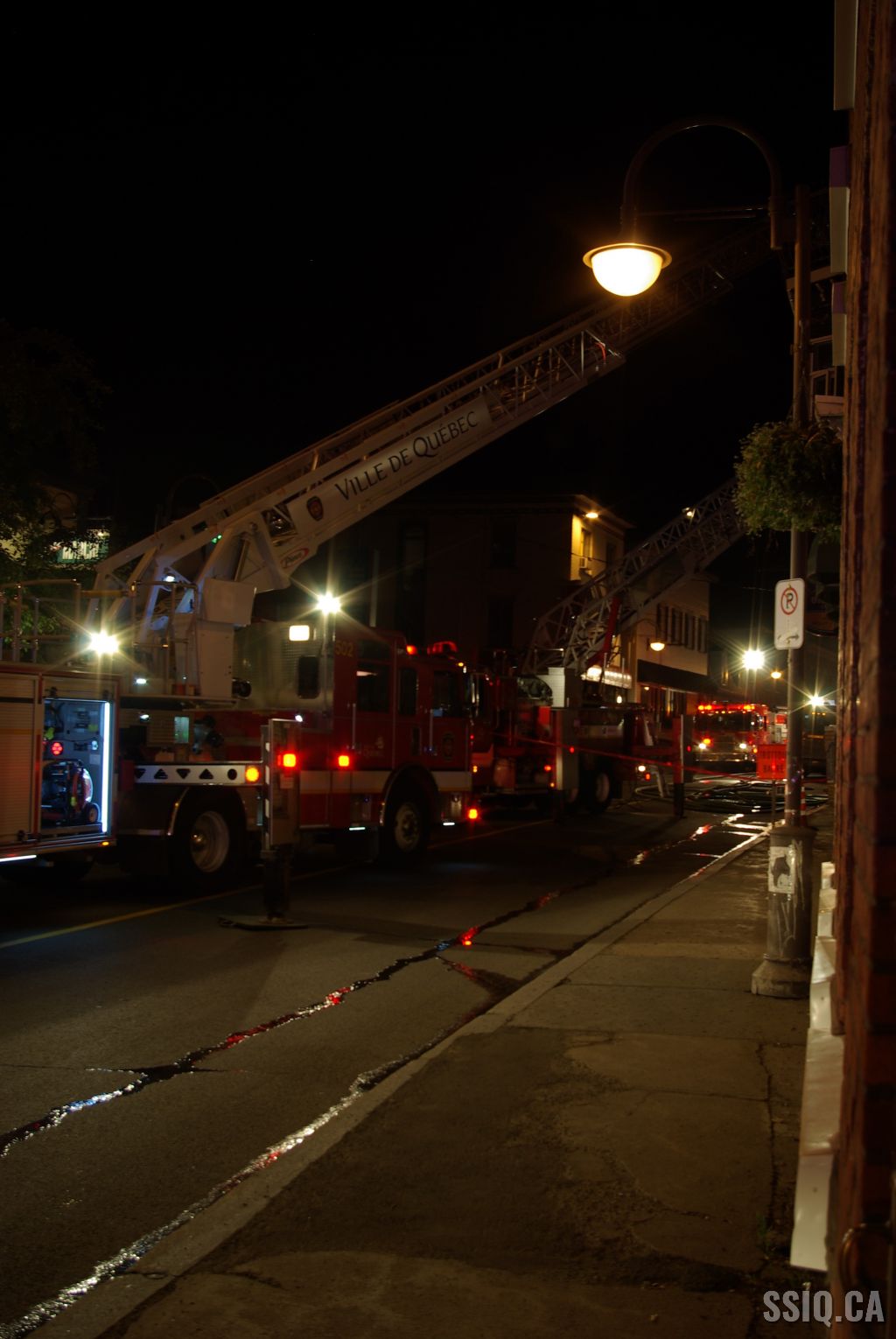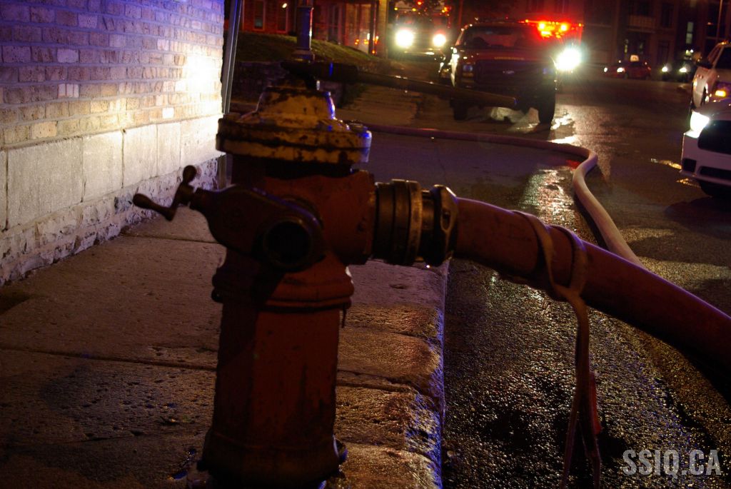 Les pompiers ont été requis suite à un appel de passants qui disent avoir vu de la fumée s'échapper du sous-sol et avoir entendu des explosions. Des flammes seraient également visibles.