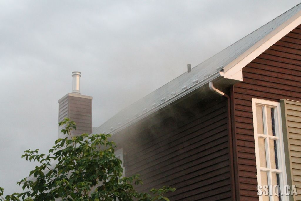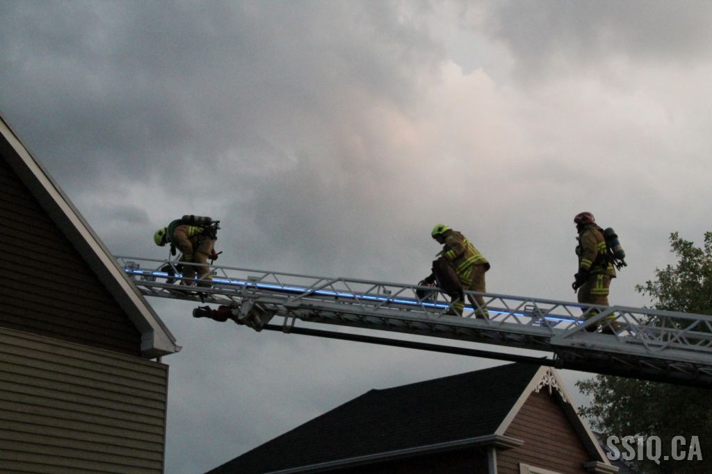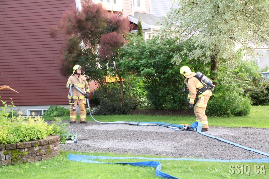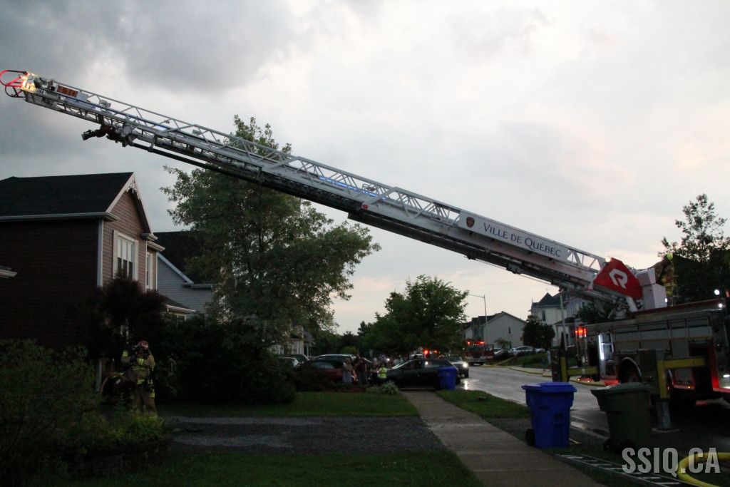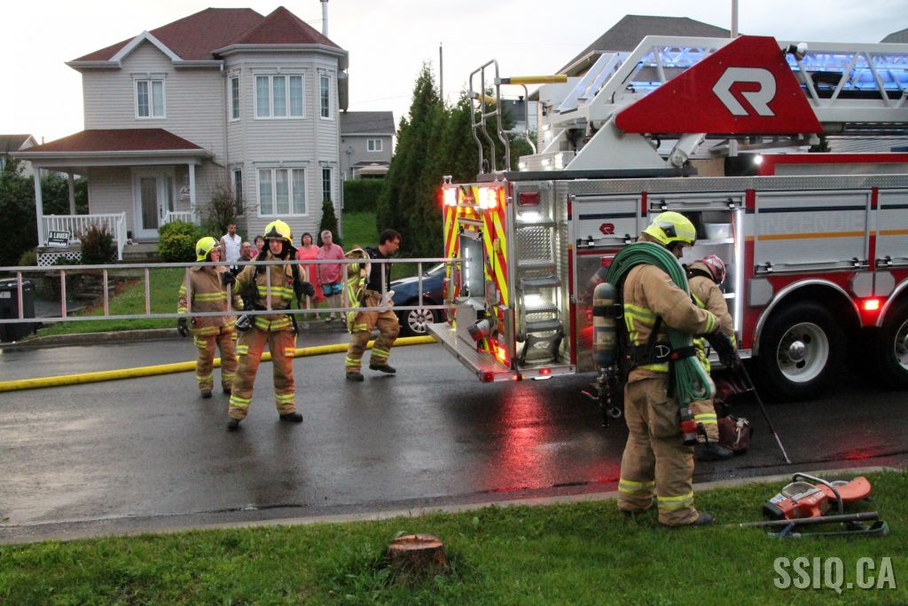 Pendant le violant orage, la foudre est tombée sur la toiture de la résidence. L'appel est logé au 911 du propriétaire. Il mentionne que de la fumée envahit la maison mais qu'il ne voit pas de flammes.