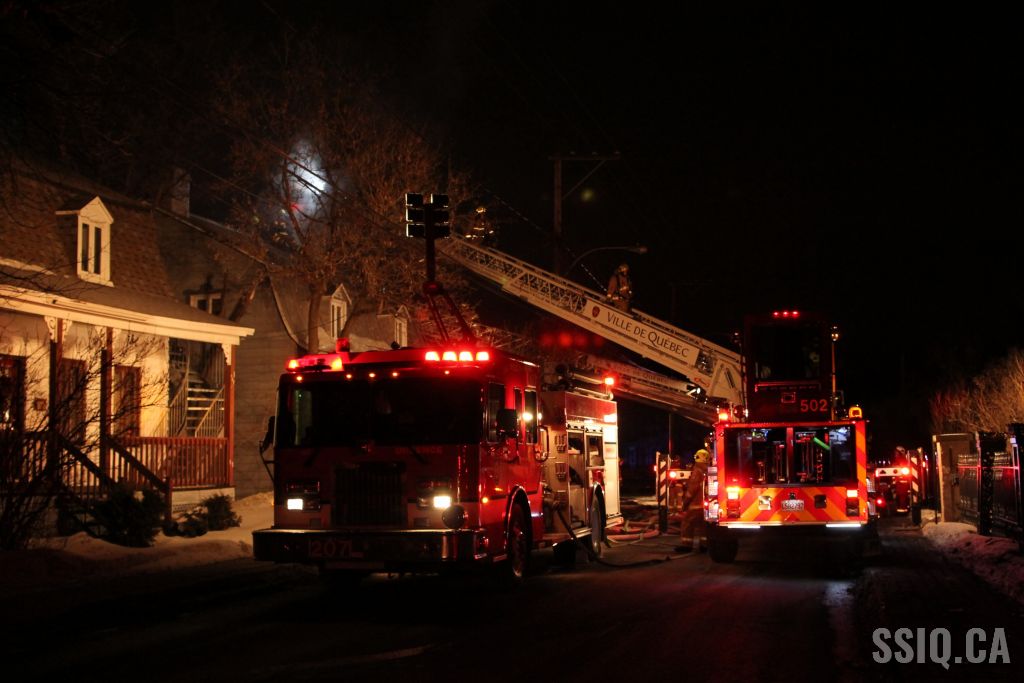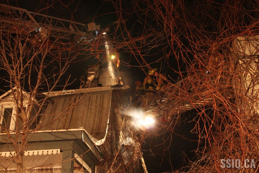 L'appel entre au 911 d'un résident, il fait mention que le feu est pris dans le toit de la résidence.