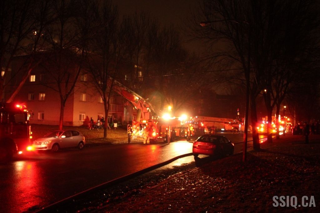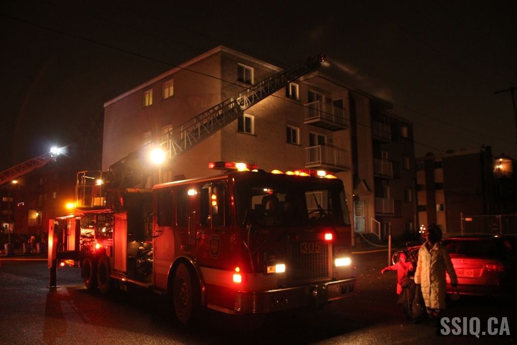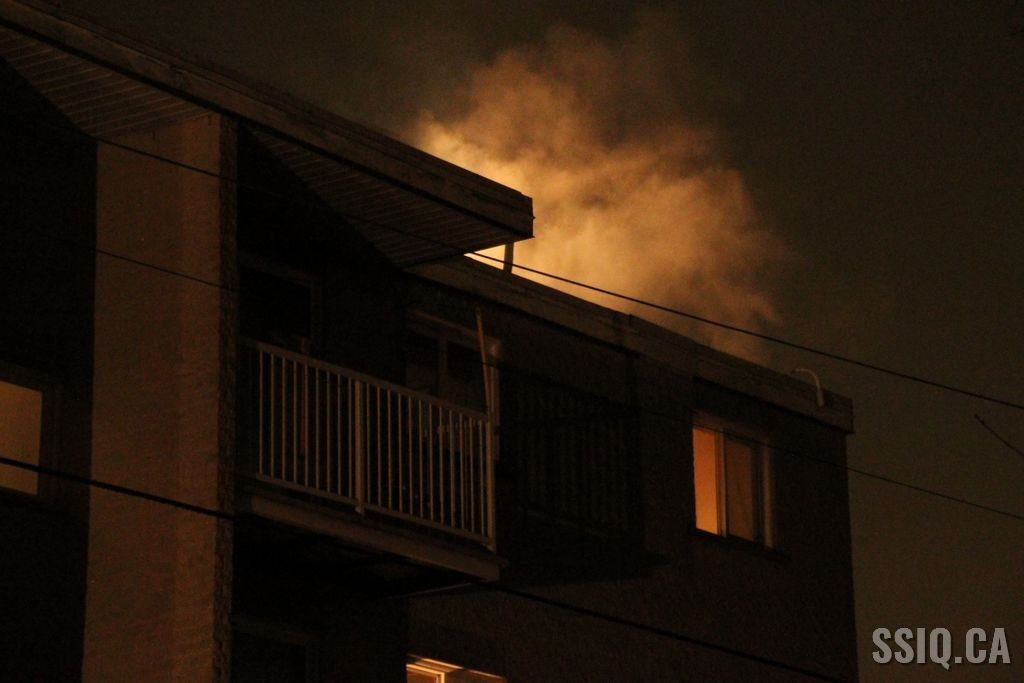 L'appel vient d'un résident. De la fumée serait visible au dernière étage. Pendant la course des unités, les appels se multiplient au 911. L'alarme serait audible dans le bâtiment et il y aurait présence de fumée.