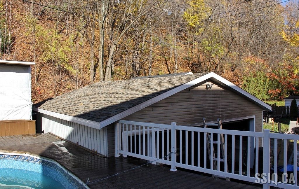 Pour l'instant, aucune flamme visible mais une grosse fumée grise se dégage du garage. Le bâtiment n'est pas rattaché à la résidence mais est accoté sur le quai de la piscine hors- terre.