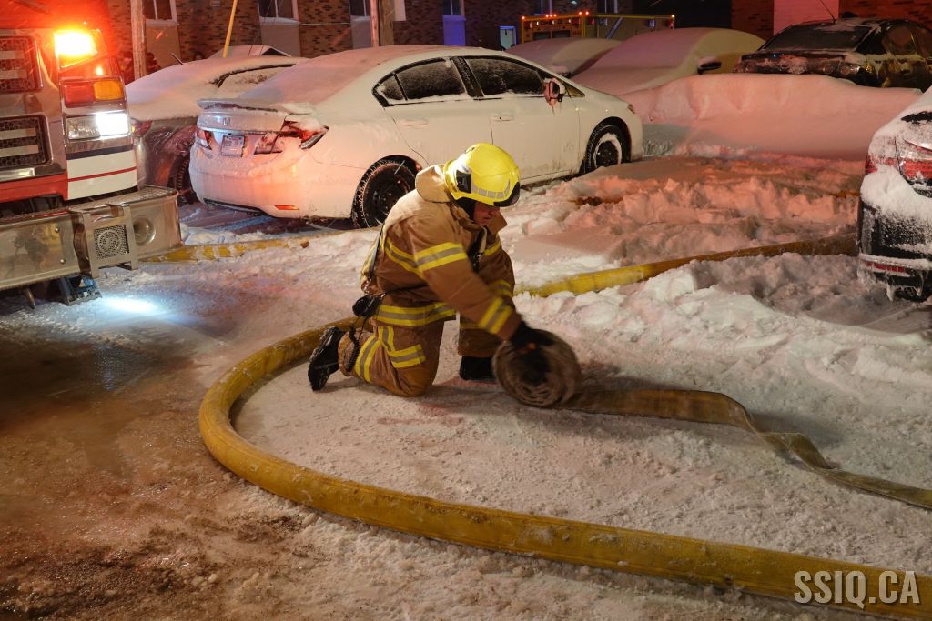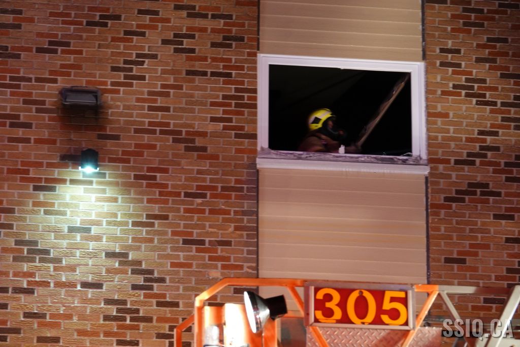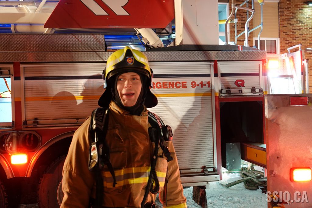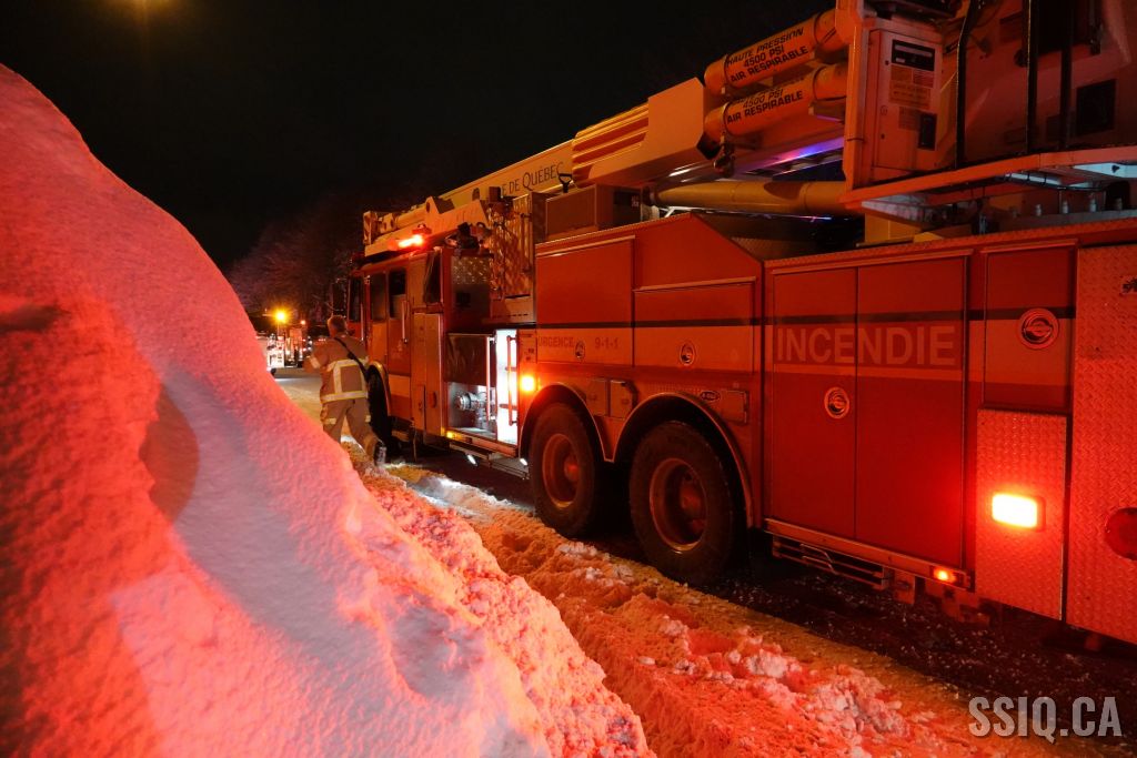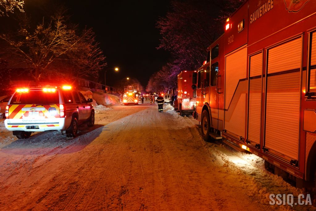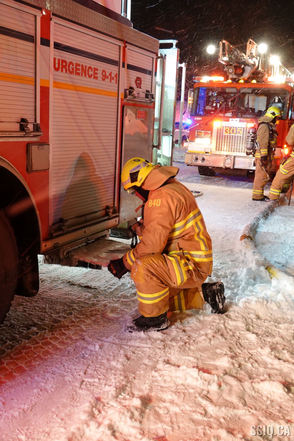 Dès son arrivée, l'officier du 206 confirme de la fumée apparente et demande l'intervention nécessaire. Les équipes d'attaque confirment alors qu'il y a un risque de propagation aux étages supérieurs. Mais la fumée devient plus noire et devant ce changement de conditions, le 144 demande une 2e alarme.