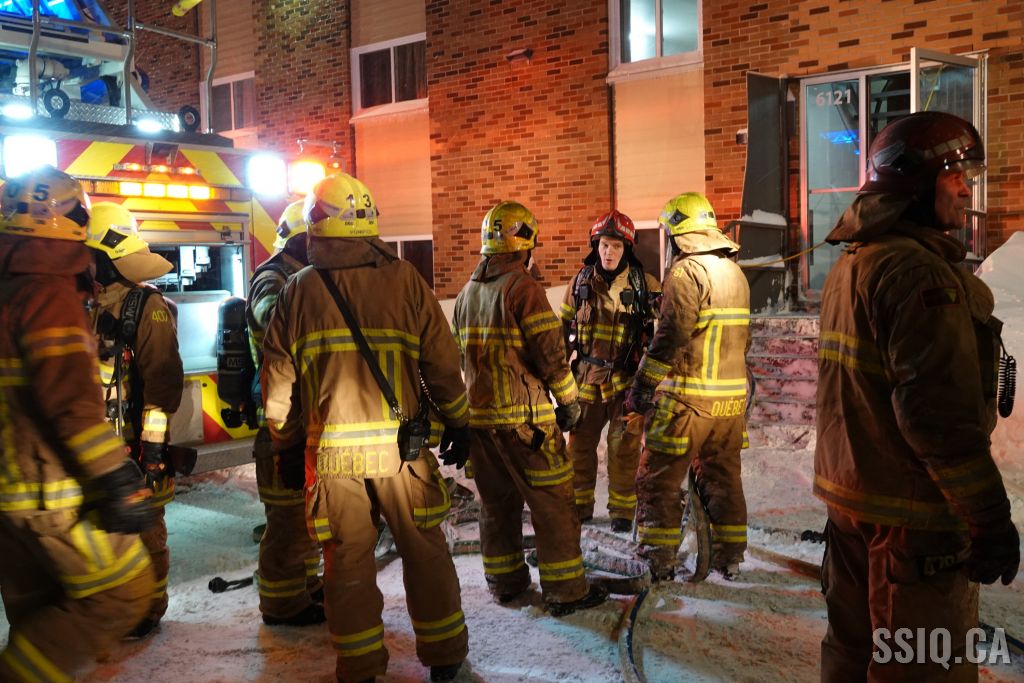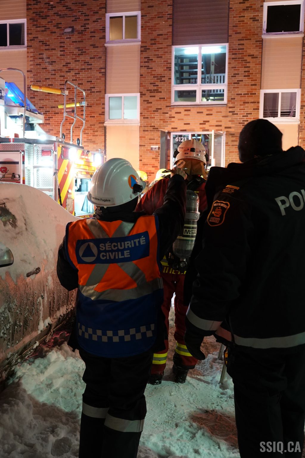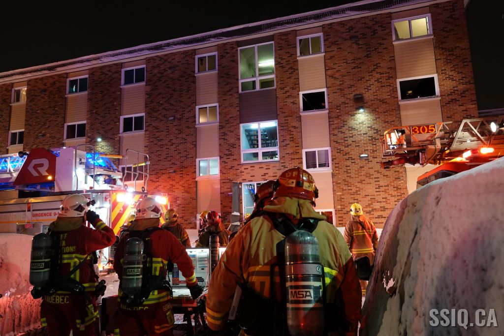 Les renforts arrivent et permettent de circonscrire l'incendie à l'appartement impliqué tandis que des vérifications aux appartements voisins sont faites et en évacuant les occupants.