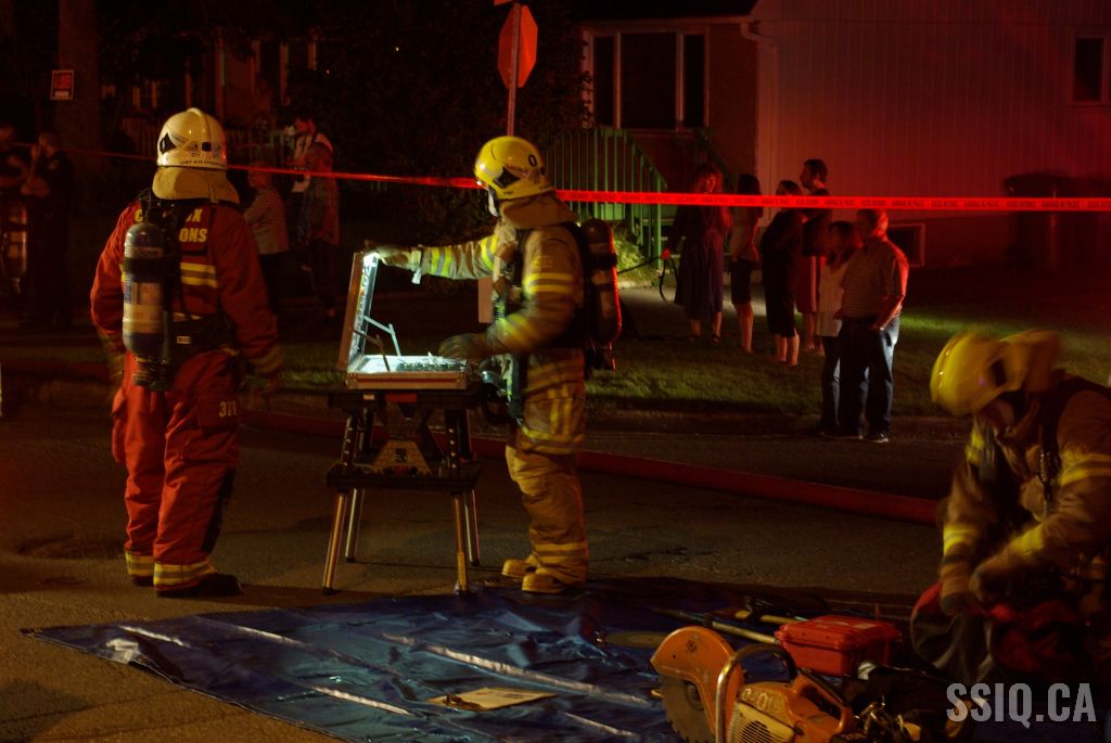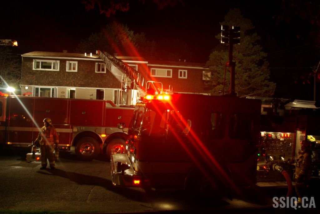 Le plaignant pense que le feu origine de sa sécheuse située au sous-sol de sa résidence. De la fumée est visible.