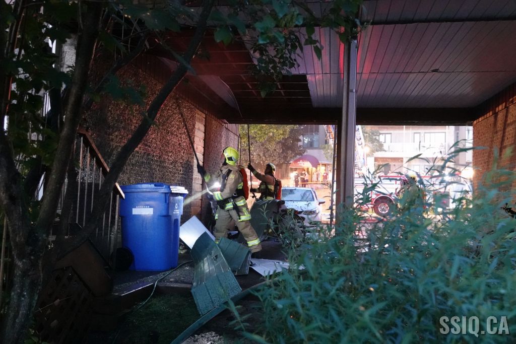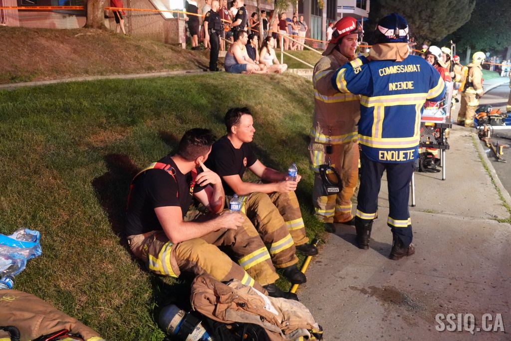 Les dégâts au bâtiment sont très importants et les équipes, par cette soirée chaude et humide, ont pu se relayer pour effectuer les dernières recherches de foyers d'incendie et les vérifications d'usages. Un bon travail de déblai a été nécessaire.