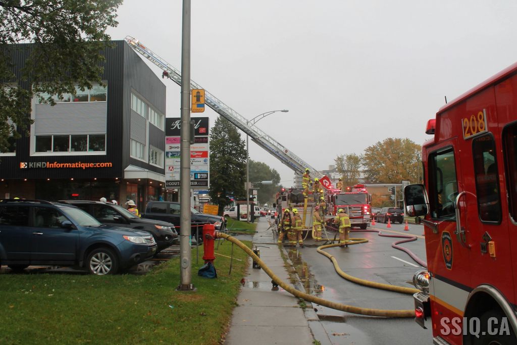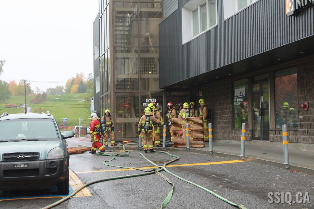 L'appel est d'abord entré pour une alarme incendie, par la suite une personne sur les lieux confirme qu'il a présence de fumée dans le corridor, alors la 1ère alarme est complétée.