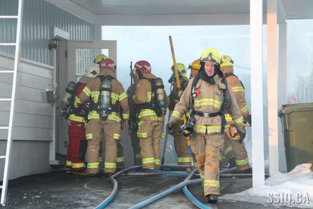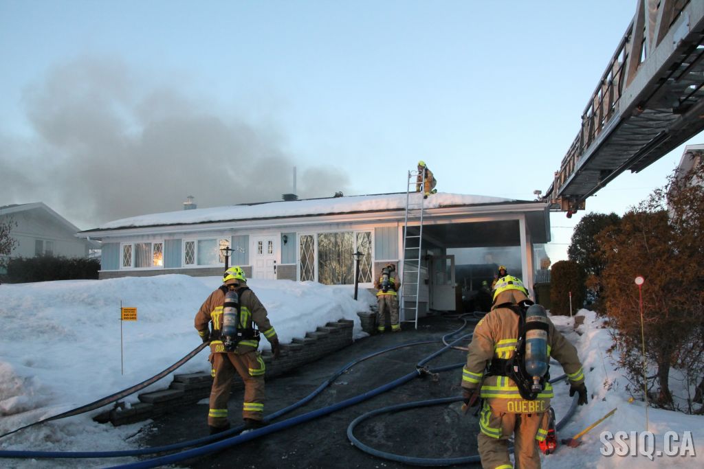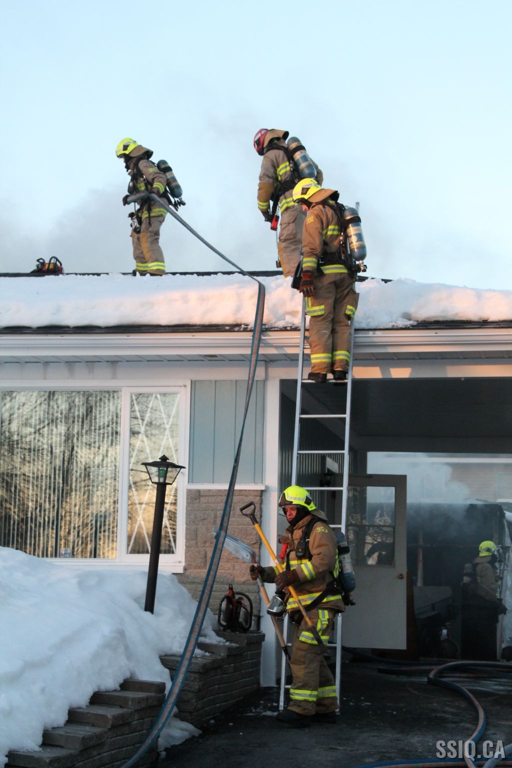 Les équipes rabattent rapidement les flammes alors que d'autres vérifient la propagation à l'intérieur de la résidence. Celle-ci a d'ailleurs subi de lourds dommages.