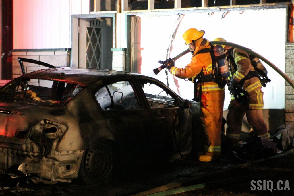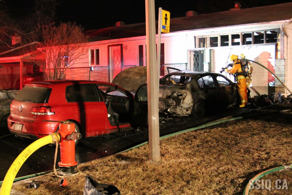 Plusieurs appels sont logés au 911. Selon les plaignants, deux voitures seraient en feu à quelques pieds de la maison.