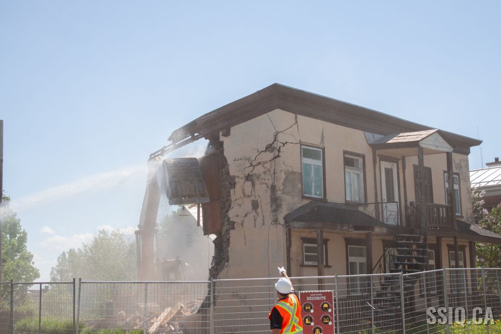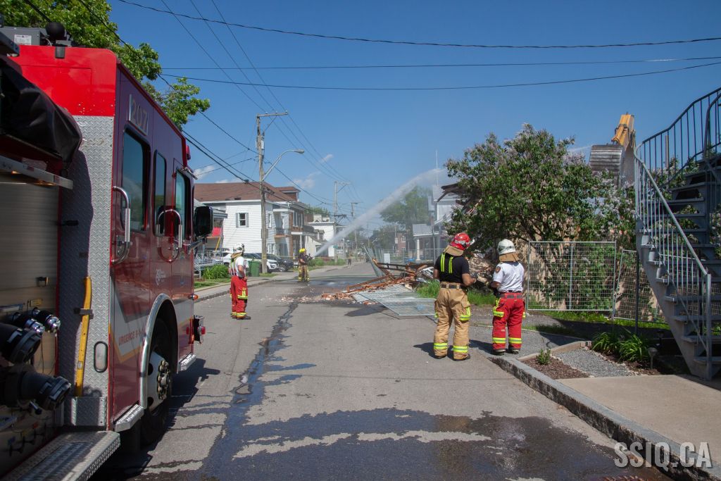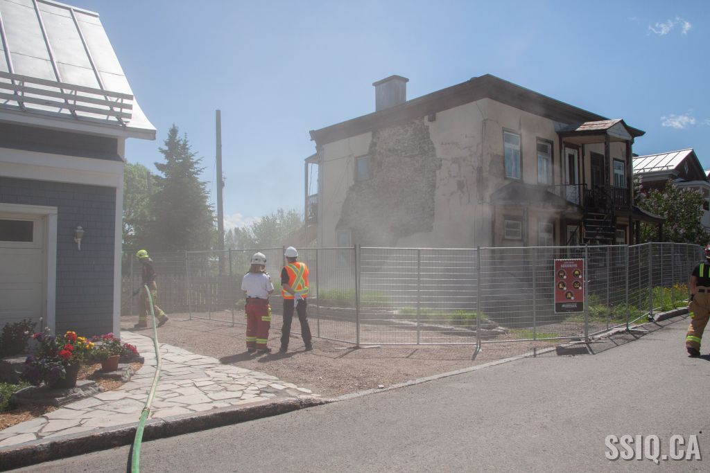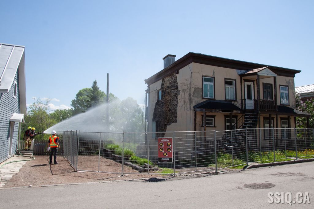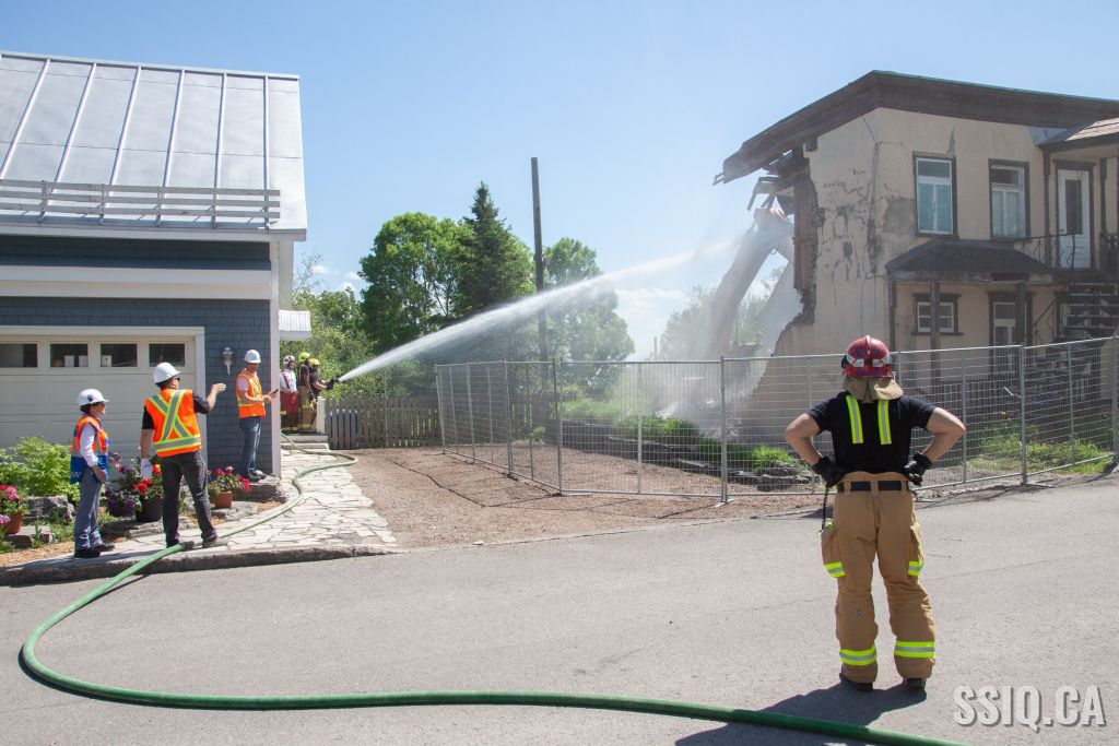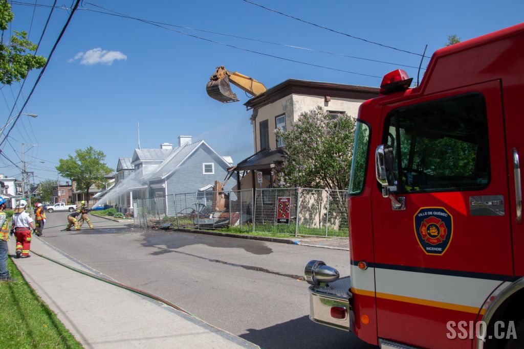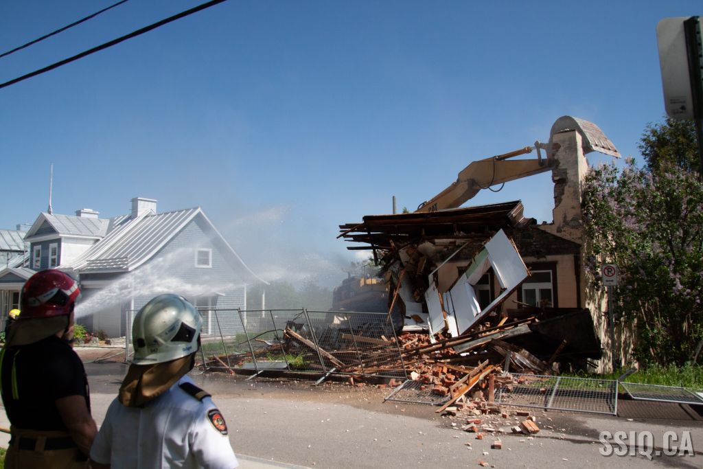 Cet après-midi, les pompiers de la caserne 7 sont intervenus pour assistance, lors de la démolition d'un bâtiment patrimonial de l'avenue Royale dans l'arrondissement Beauport.
