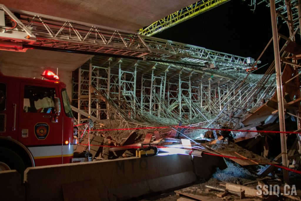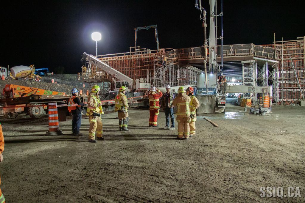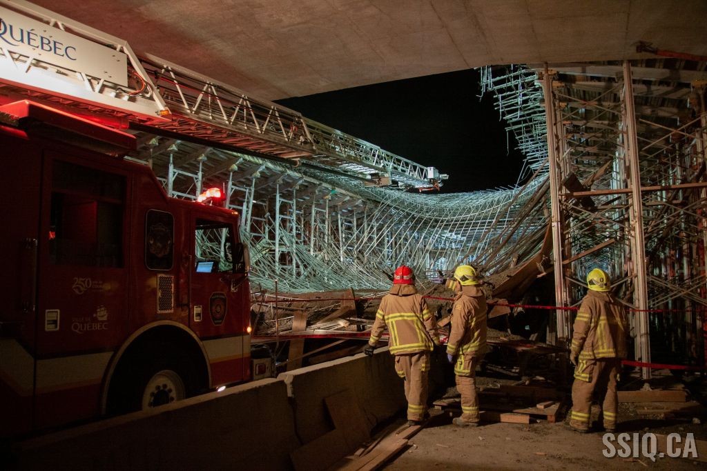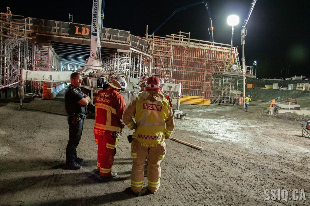 En fin de soirée, les pompiers sont intervenus pour l'effondrement d'un viaduc en construction au chantier de l'autoroute Henri-IV, dans l'arrondissement Les Rivières.