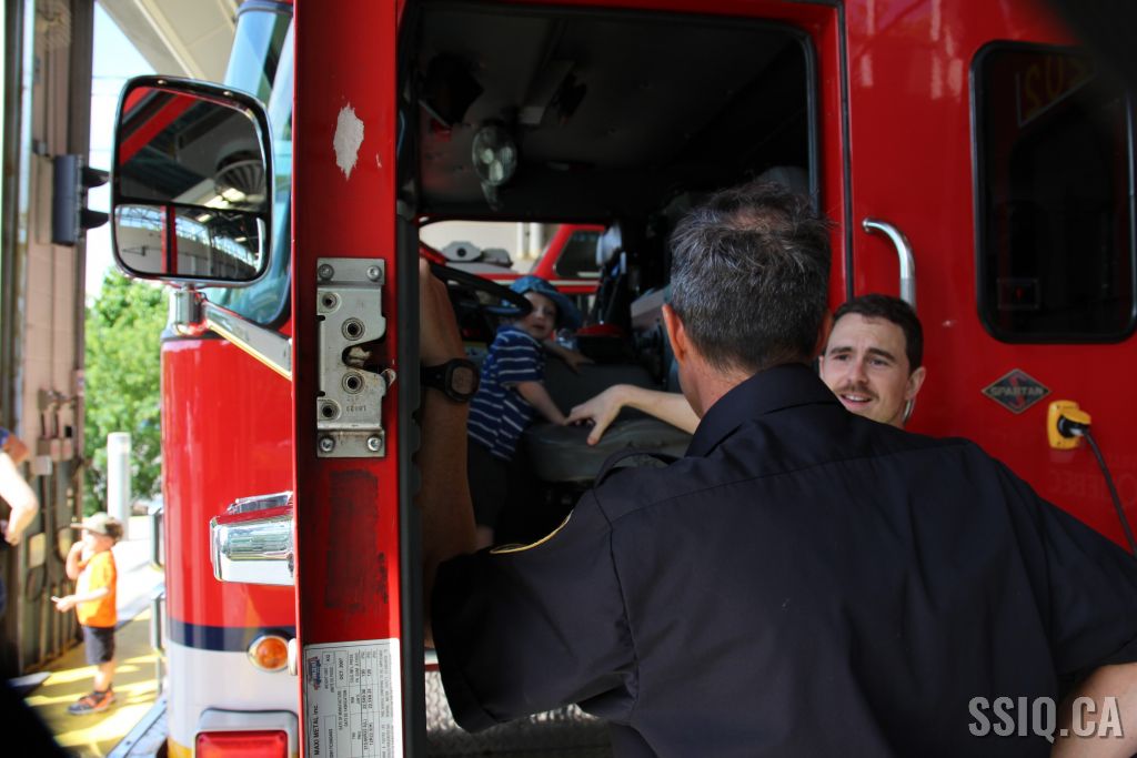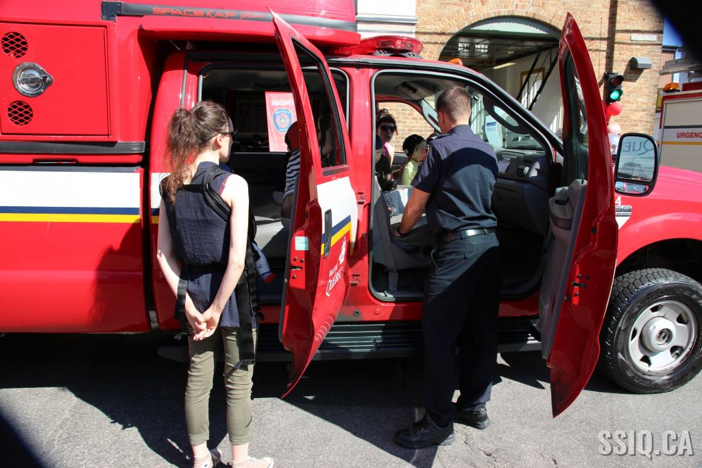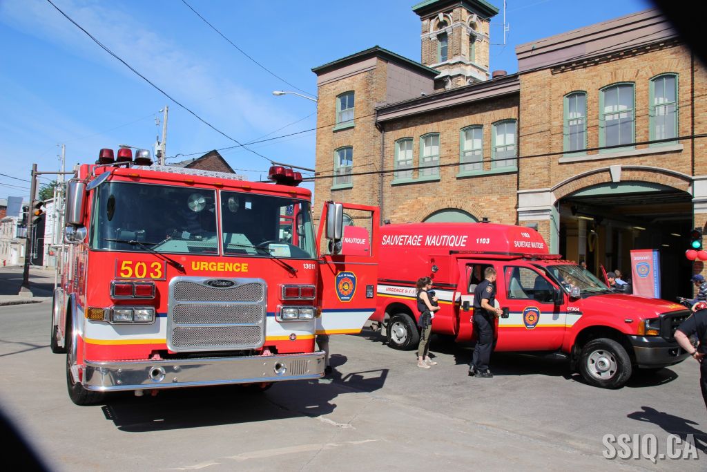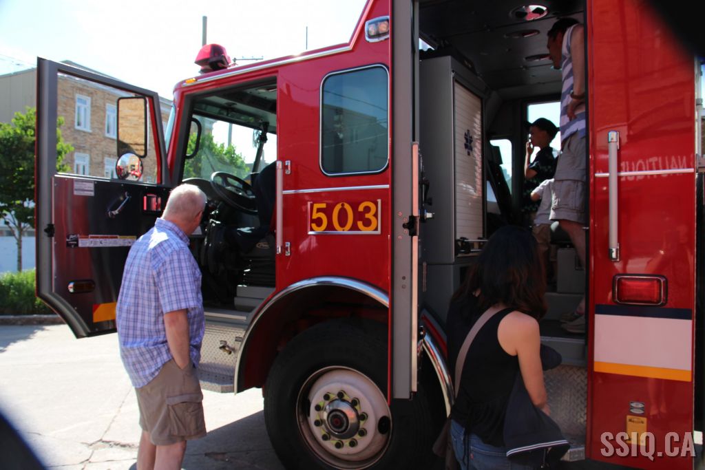 En ce beau samedi du 16 juin, le Service de Protection contre l'incendie de la Ville de Québec ouvrait les portes de toutes les casernes et conviait la population à venir rencontrer les Pompiers et Pompières de son service. Les équipements ainsi que les camions à incendies de toutes sortes étaient exposés fièrement .