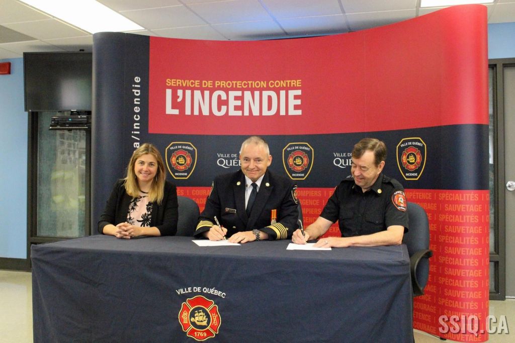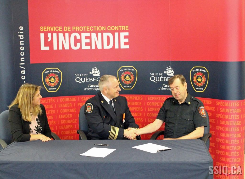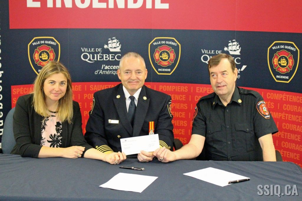 Le directeur, accompagné de la directrice adjointe, a remis avec plaisir un chèque et a reconduit le partenariat avec la Ville de Québec. Le service est très reconnaissant du travail accompli par le Club Appel 99 et du service qu’il apporte aux pompiers lors des interventions et le directeur réitère son soutien au Club Appel 99.