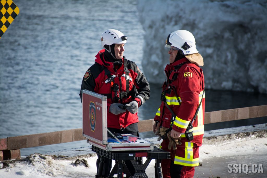 Les équipes de la spécialité en sauvetage nautique du SPCIQ ont procédé à une simulation de sauvetage sur le fleuve St-Laurent le 17 février dernier. Les objectifs d’une tel exercice étaient d’approfondir les compétences techniques de tous, de tester les procédures opérationnelles et aussi valider les protocoles de communication entre les différents services d’urgence, que ce soit entre les intervenants nautiques du SPCIQ, la Garde Côtière, les policiers, les ambulanciers, la Centrale 911, le remorqueur Océan, et le Port de Québec.
