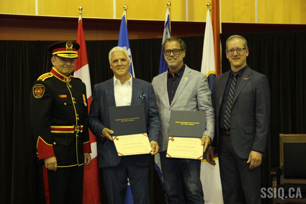 En ce jeudi 9 mai, le service de protection contre les incendies de la Ville de Québec rendait hommage à ses nouveaux retraités et par la même occasion remis 36 citations d'honneur à des membres de l'organisation mais aussi à des citoyens pour gestes courageux.