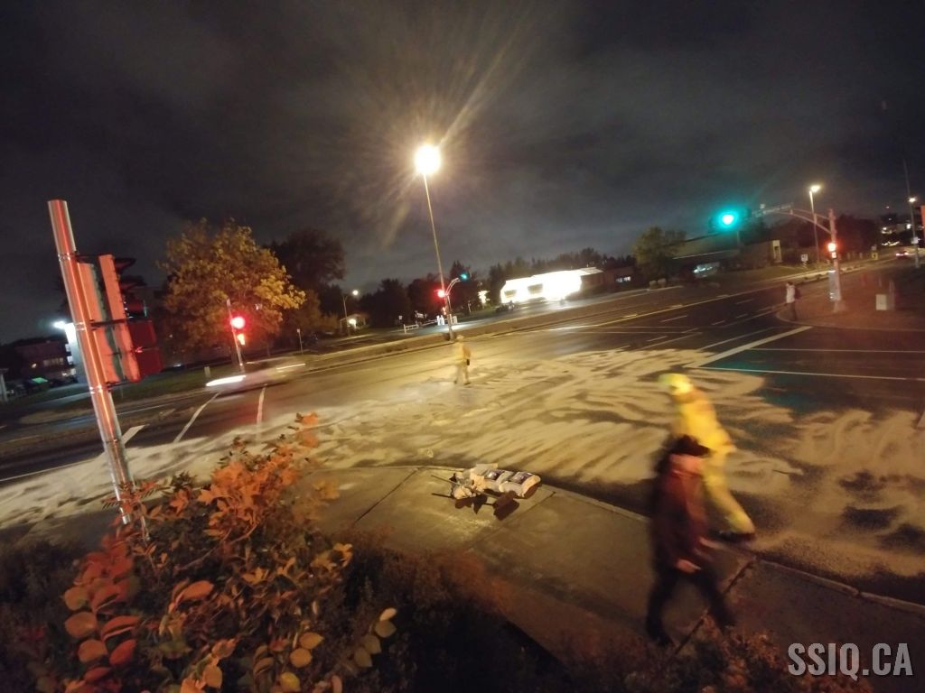 En soirée, les pompiers ont été demandés pour un déversement d’huile à l’intersection de la rue Hochelaga et Bernardin Morin, possiblement une voiture qui aurai eu un bris mécanique plus tôt dans la journée. La chaussée était très glissante. Plusieurs poches d’absorbant à été utilisé pour couvrir les traces d’huile.