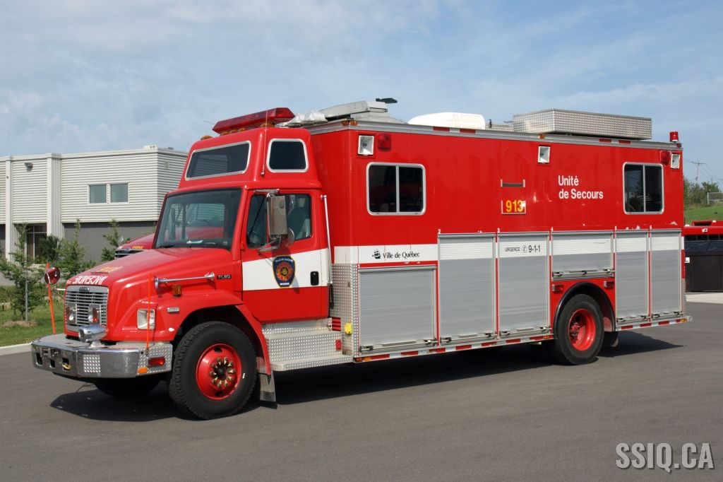 Véhicule de soutien fabriqué par Maxi-Métal sur un chassis Freightliner FL-80 1996. Moteur Caterpillar modèle 3126.