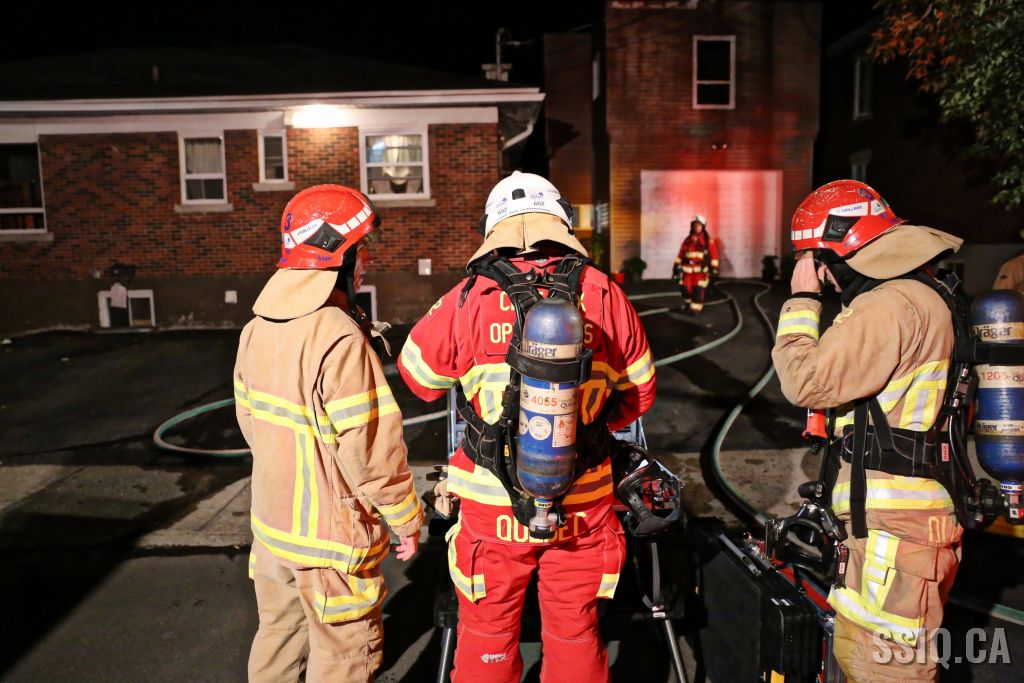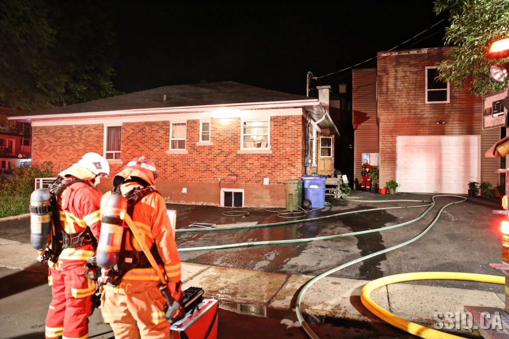 L'appel provient d'un voisin, celui-ci mentionne des flammes visibles au sous-sol. Rapidement sur place, les policiers confirment un feu éclaté dans la résidence. À l'arrivée des premières équipes, une fumée est apparente, ceux-ci établissent un jet d'attaque pour procéder à l'extinction des flammes.