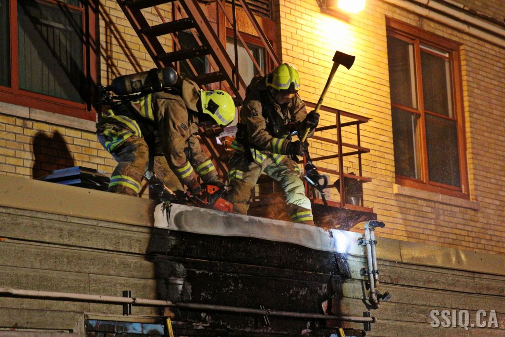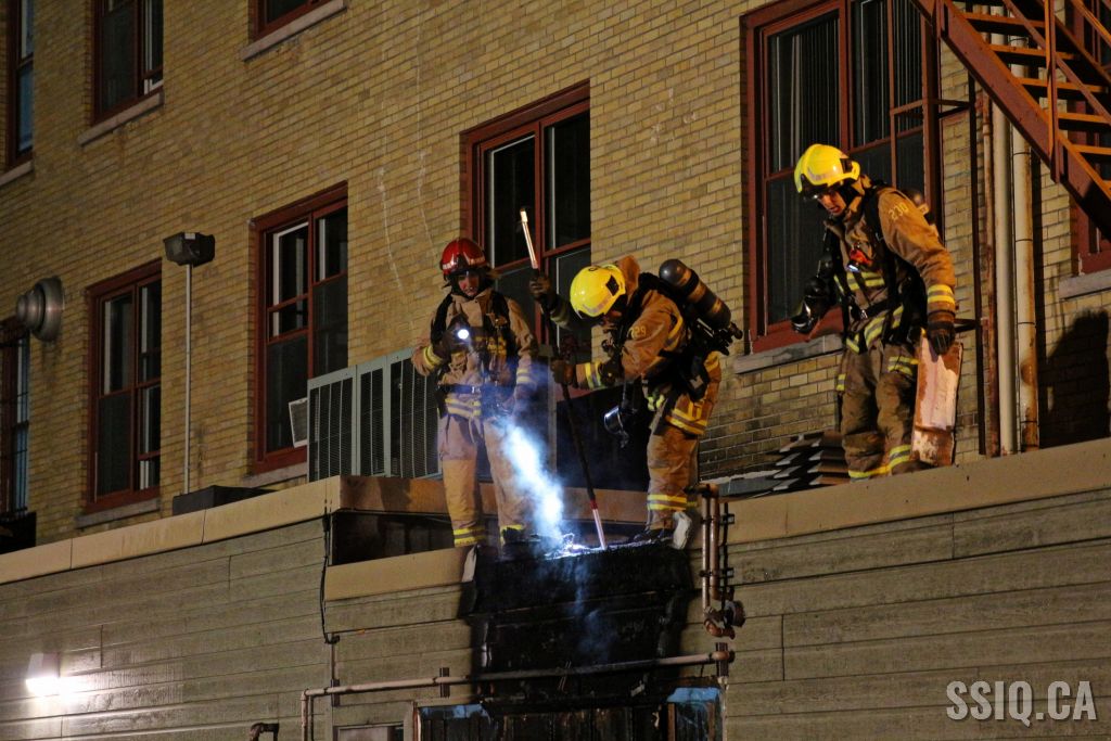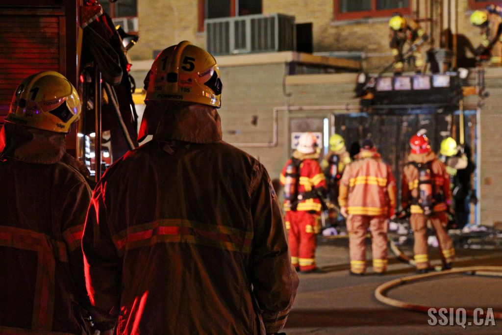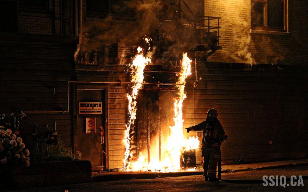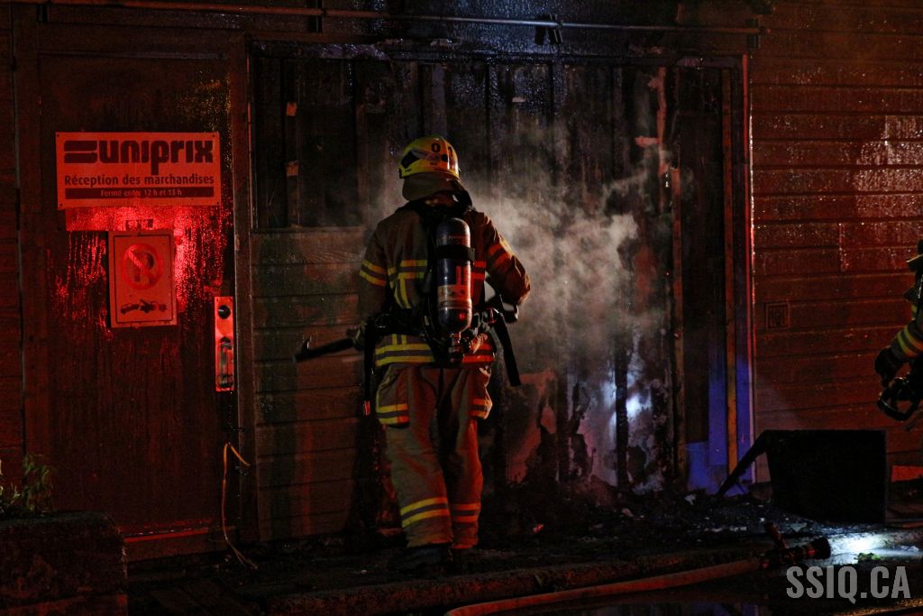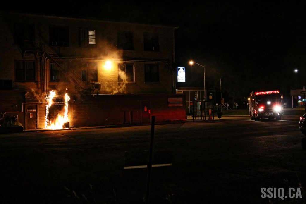 Un citoyen contact le 9-1-1 peu avant 3h00 pour signaler des flammes visibles derrière un bâtiment commercial à l'angle du Boulevard René-Lévesque et rue du Belvédère.