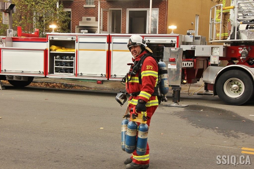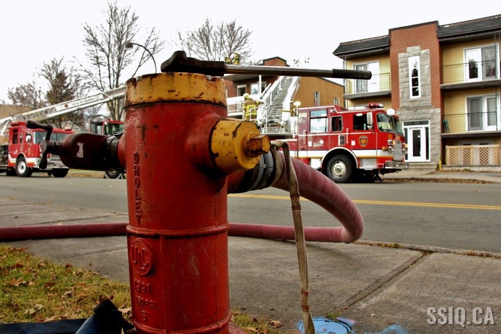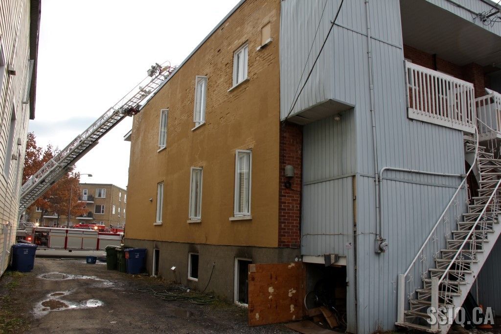 En arrivant sur les lieux, le 123 demande le code « Intervention nécessaire » et quelques instants après, augmente en deuxième alarme. À la suite d'une attaque agressive, les pompiers constatent que le feu ne s'est pas propagé à la structure du bâtiment et s'est contenté de ravager le contenu du logement au sous-sol. Quarante minutes après le début de l'intervention, le code « Aggravation improbable » est donné , suivi du « sous-contrôle » quelques minutes plus tard.