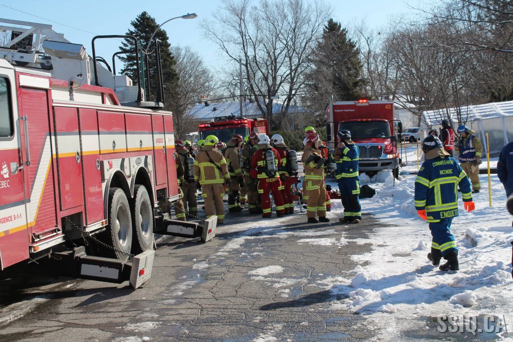 Le 209 entre dans le bâtiment pour faire une attaque initiale, alors que le 210 va vers la toiture avec des lances perforatrices. Quelques minutes plus tard, la stratégie d'attaque change et le 209 se retire du bâtiment pour effectuer une attaque transitoire par l'extérieur au sous-sol. Les secours étant engagé à plein, le PC ordonne une 2e alarme.
