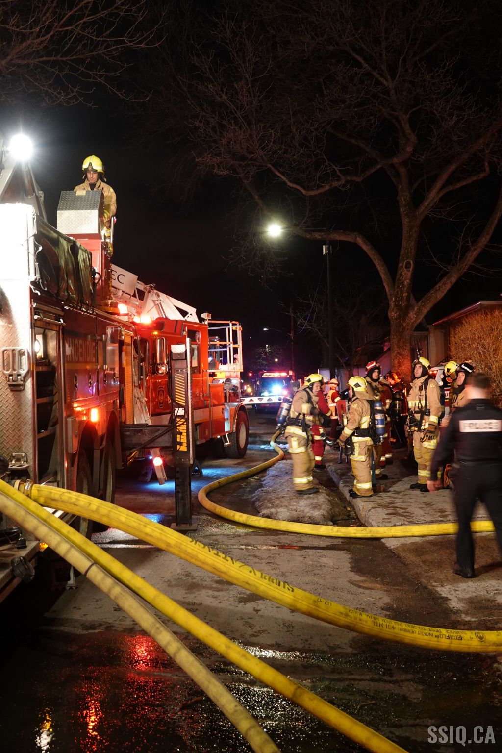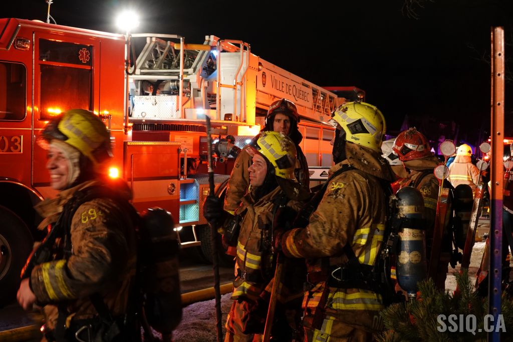 Les évacuations sont complétées, le feu fait rage au second étage, et les équipes travaillent en mode défensif, notamment pour protéger les secteurs 2 et 4.