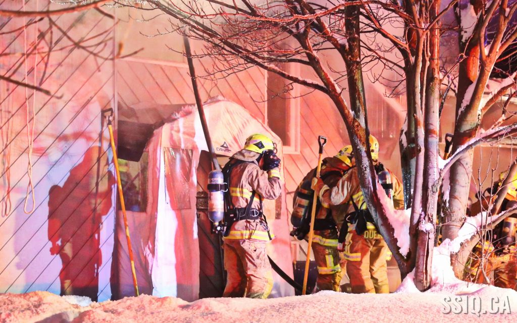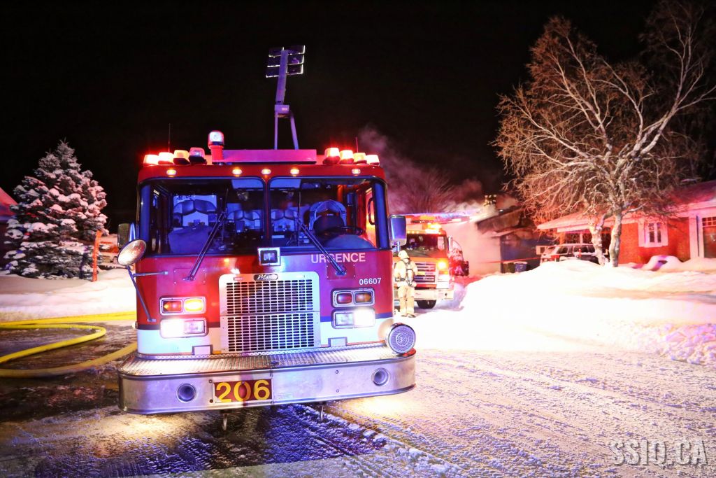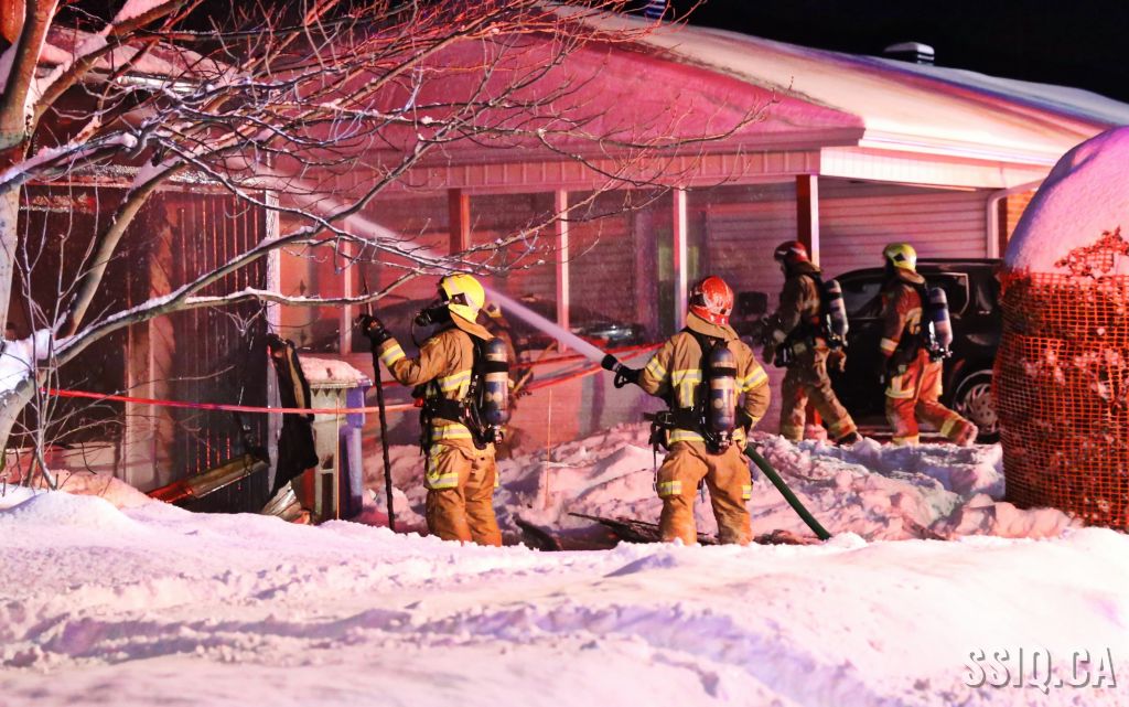 L'appel provient de sur les lieux, le citoyen mentionne un début d'incendie dans le garage rattaché à la maison et que l'évacuation de la maison est en cours. À son arrivée, le 206 confirme un feu éclaté, que le bâtiment est évacué et ordonne l'intervention nécessaire, les pompiers établissent un jet d'attaque.