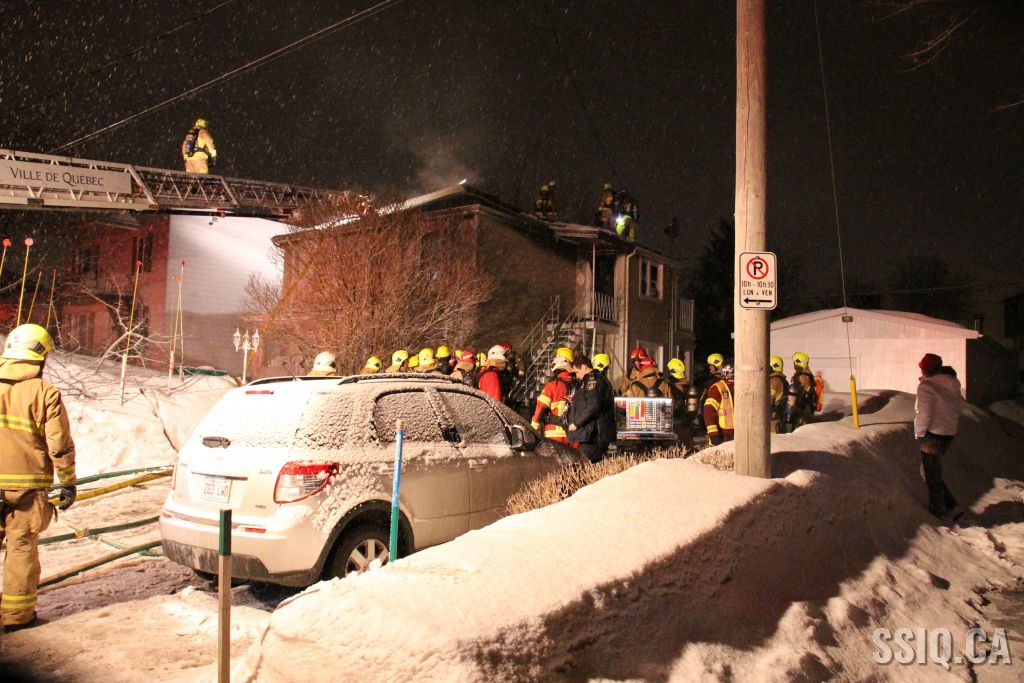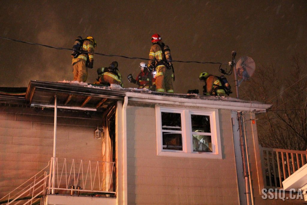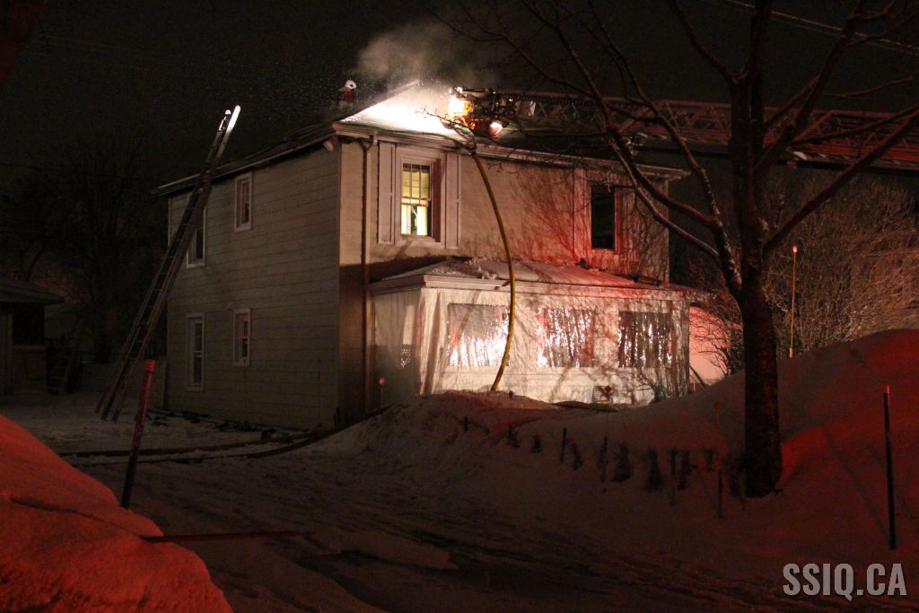 Les flammes font rage au 2e étage et se propagent à la toiture, alors la 2e alarme est ordonnée.