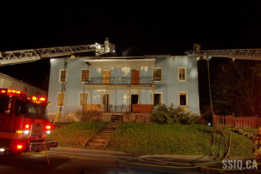 Un incendie a lourdement endommagé un bâtiment désaffecté détaché de chaque côté sur la 57e Rue Est. Dès les premiers détails, on mentionne des flammes sur la galerie. Une odeur de feu et de fumée était perceptible dans les environs selon les premiers témoins.