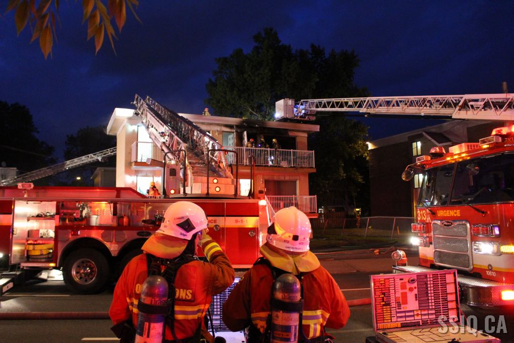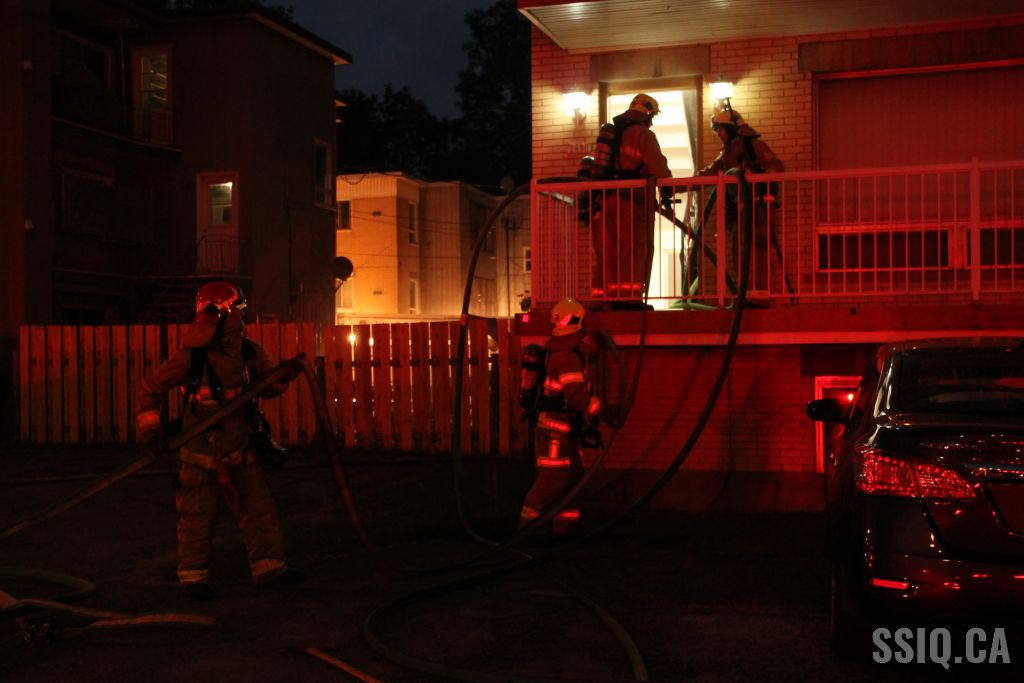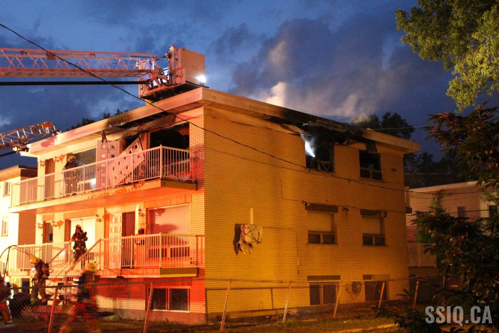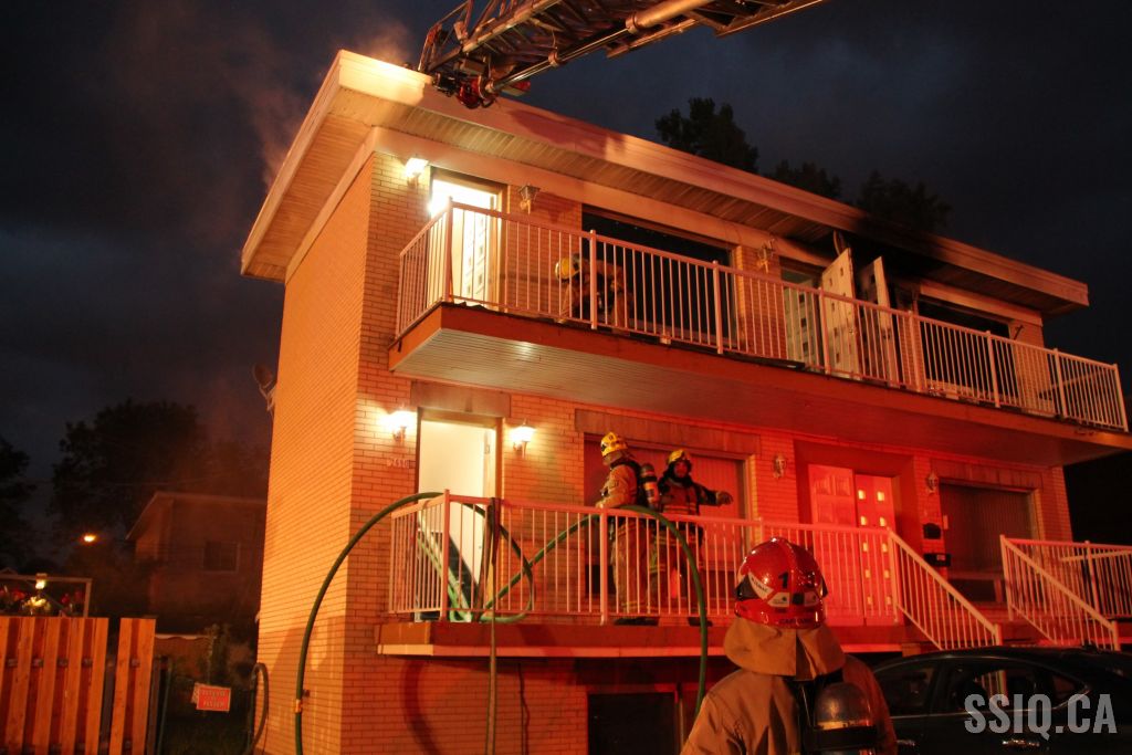 L'appel vient à peine d'être réparti dans les casernes, que le superviseur ambulancier confirme sur les ondes que le feu sort par les fenêtres du deuxième étage au 2690 boulevard Henri-Bourassa, un bâtiment à appartements, et que des gens sont probablement coincés sur les balcons.
