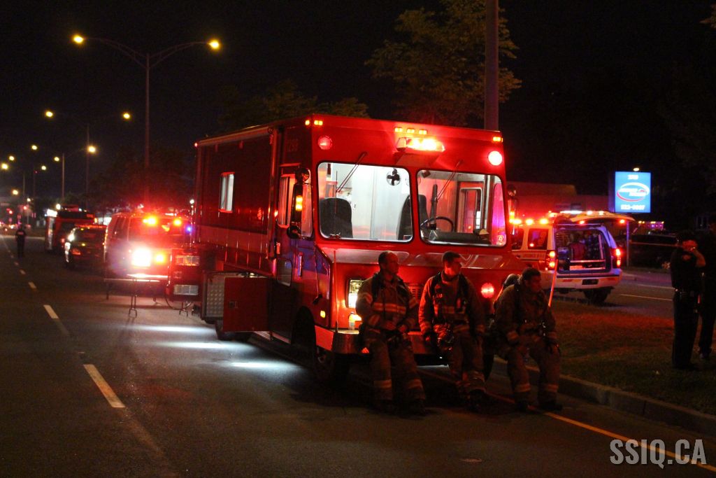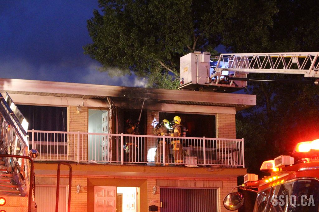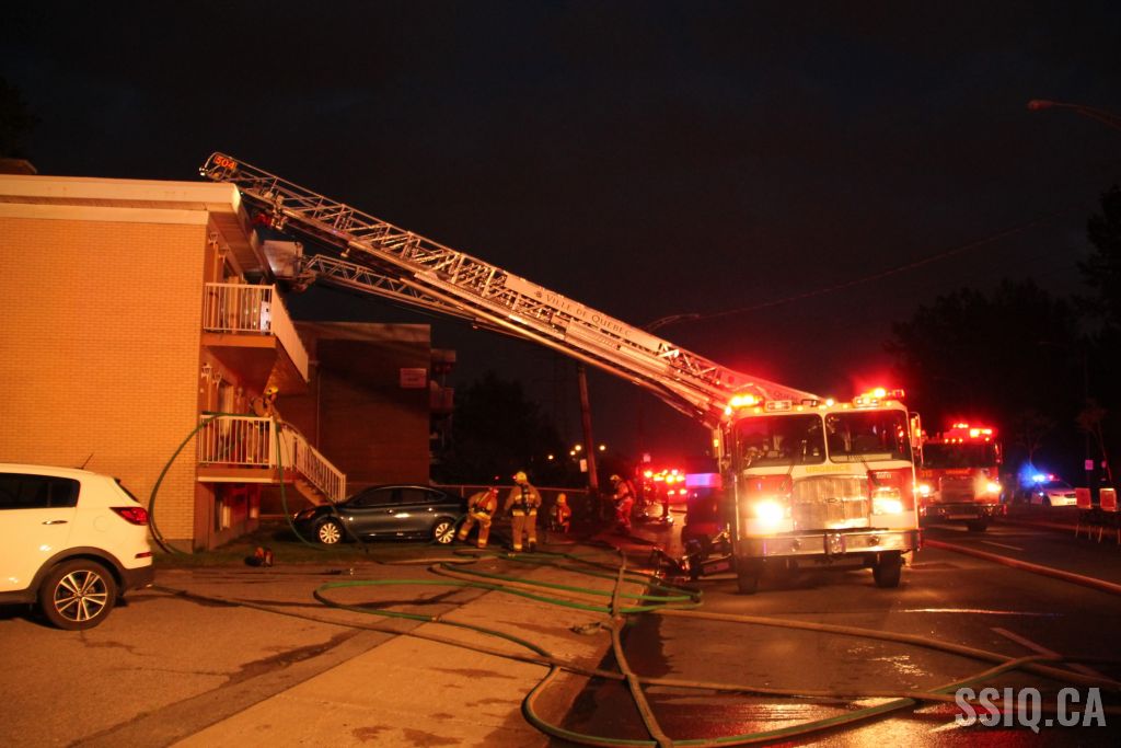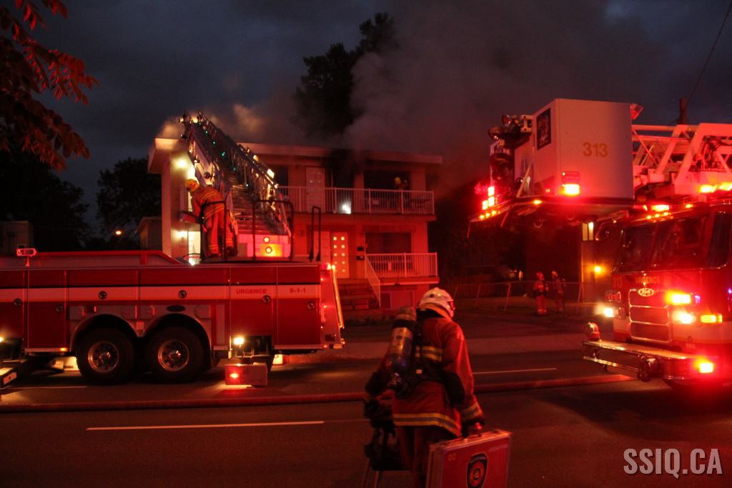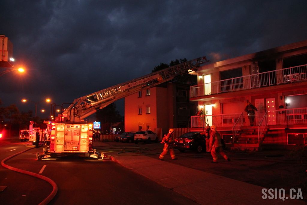 L'appel vient à peine d'être réparti dans les casernes, que le superviseur ambulancier confirme sur les ondes que le feu sort par les fenêtres du deuxième étage au 2690 boulevard Henri-Bourassa, un bâtiment à appartements, et que des gens sont probablement coincés sur les balcons.