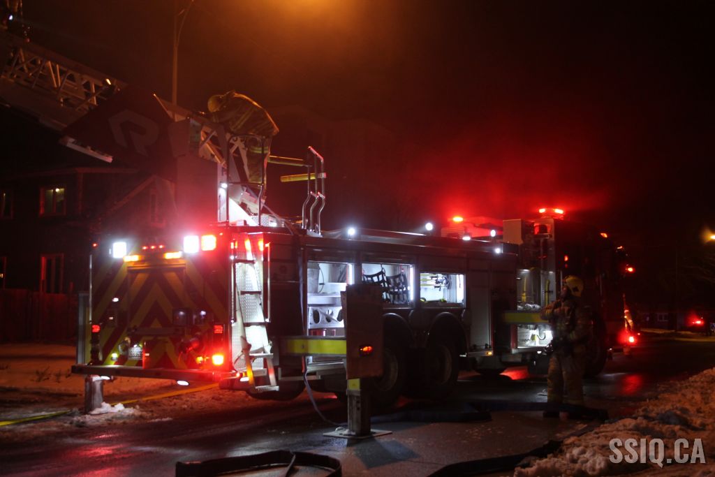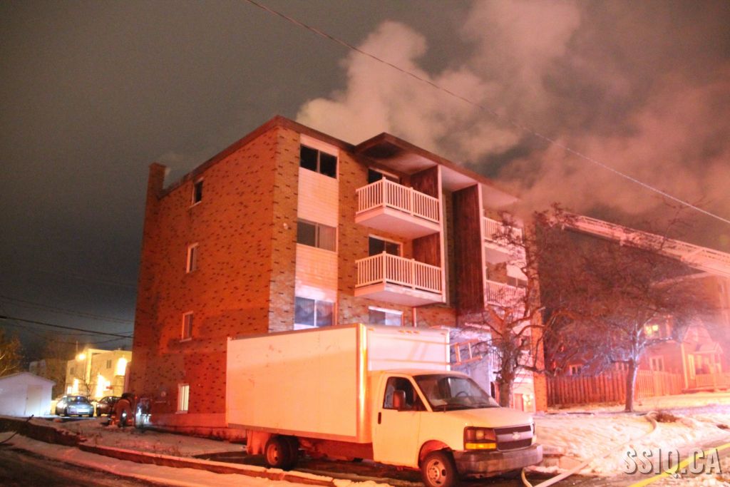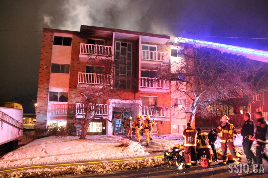 L'appel provient d'un résident du 4220 rue des Cyprès. Il mentionne voir une épaisse fumée sortir du dernier étage du 4213 et également entendre quelqu'un crier. Arrivés peu après l'appel initial, les policiers confirment beaucoup de fumée sur place.