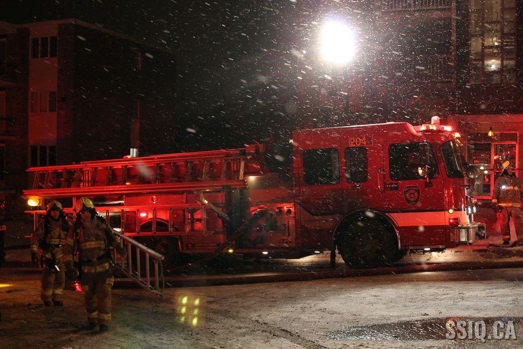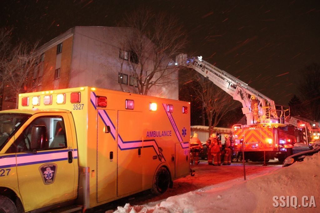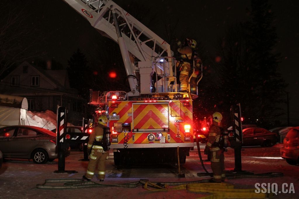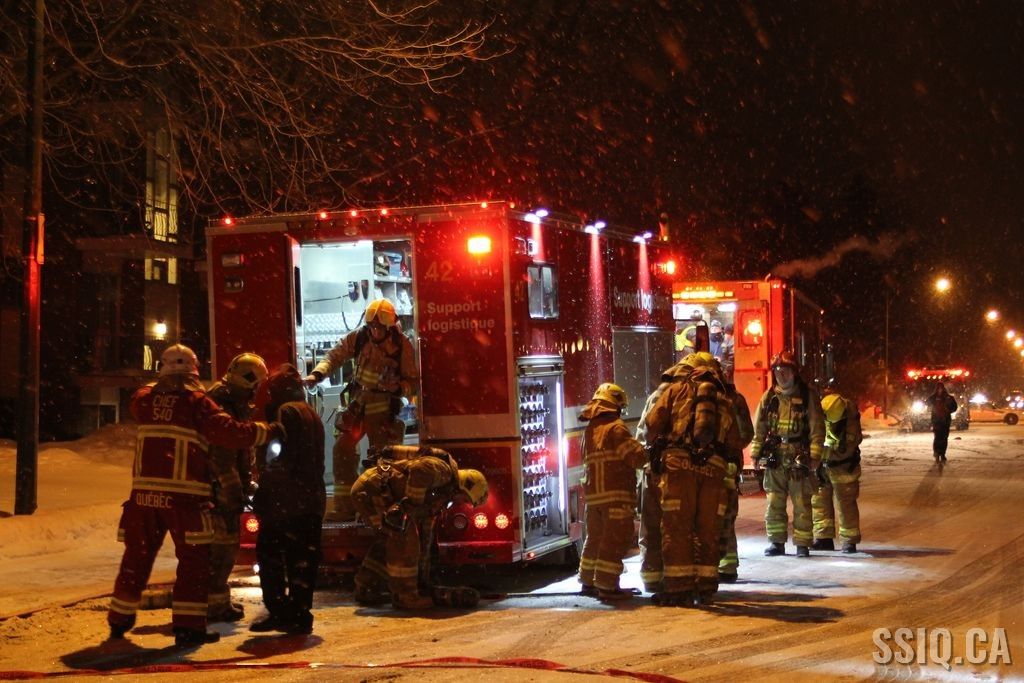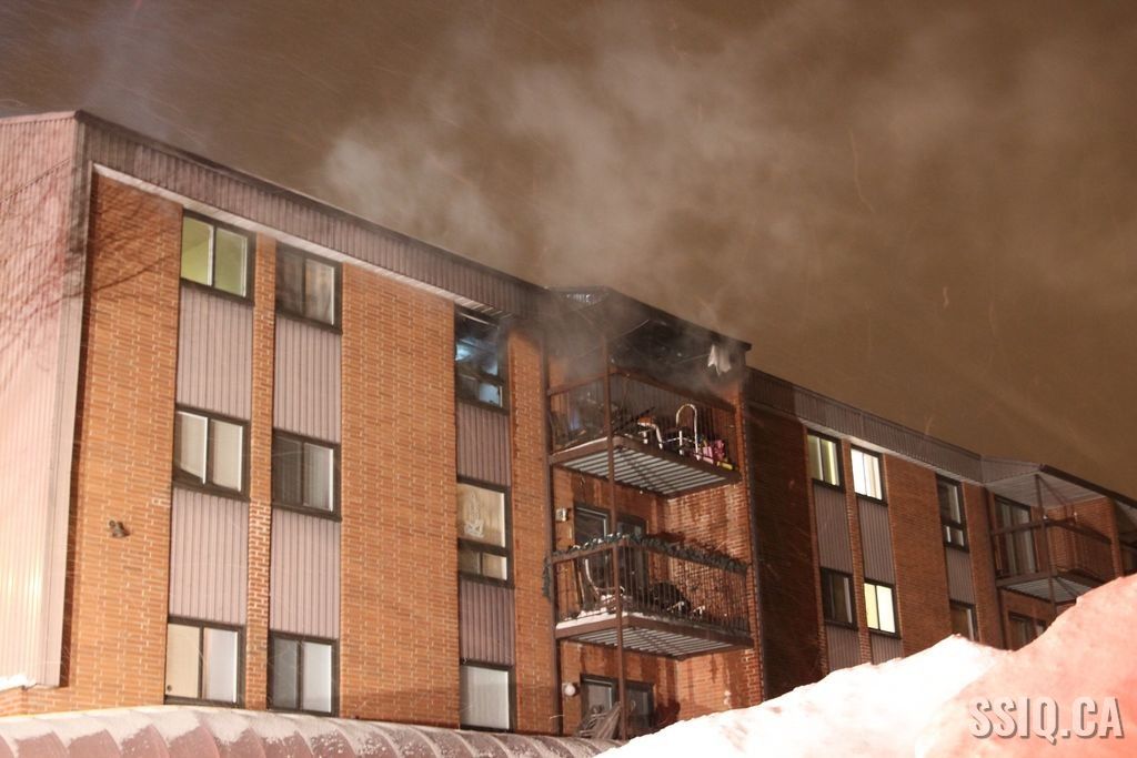 Un appel est logé au 911 d'un résident, il fait mention que le feu serait pris dans un logement et que des gens seraient toujours à l'intérieur. Devant les dangers imminents, il est impossible pour lui de les secourir. Il a donc frappé aux portes des logements voisins pour réveiller les gens et les aider à évacuer.